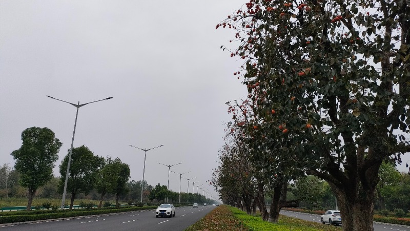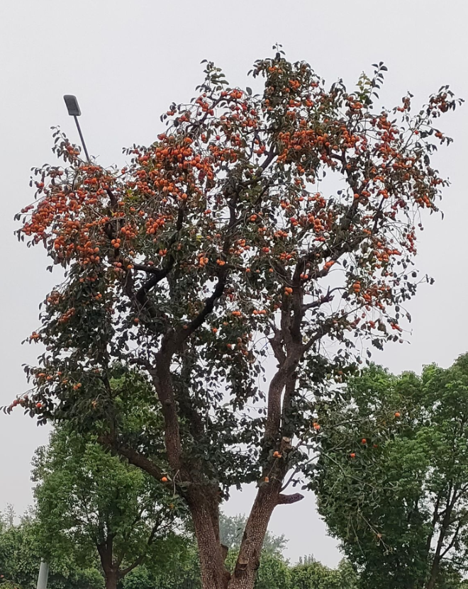 阜阳市园林管理处工作人员表示,西湖大道上的这些柿树是观赏柿树,果实不宜人食用,可保留到初冬时节,为过冬的鸟类提供食粮。