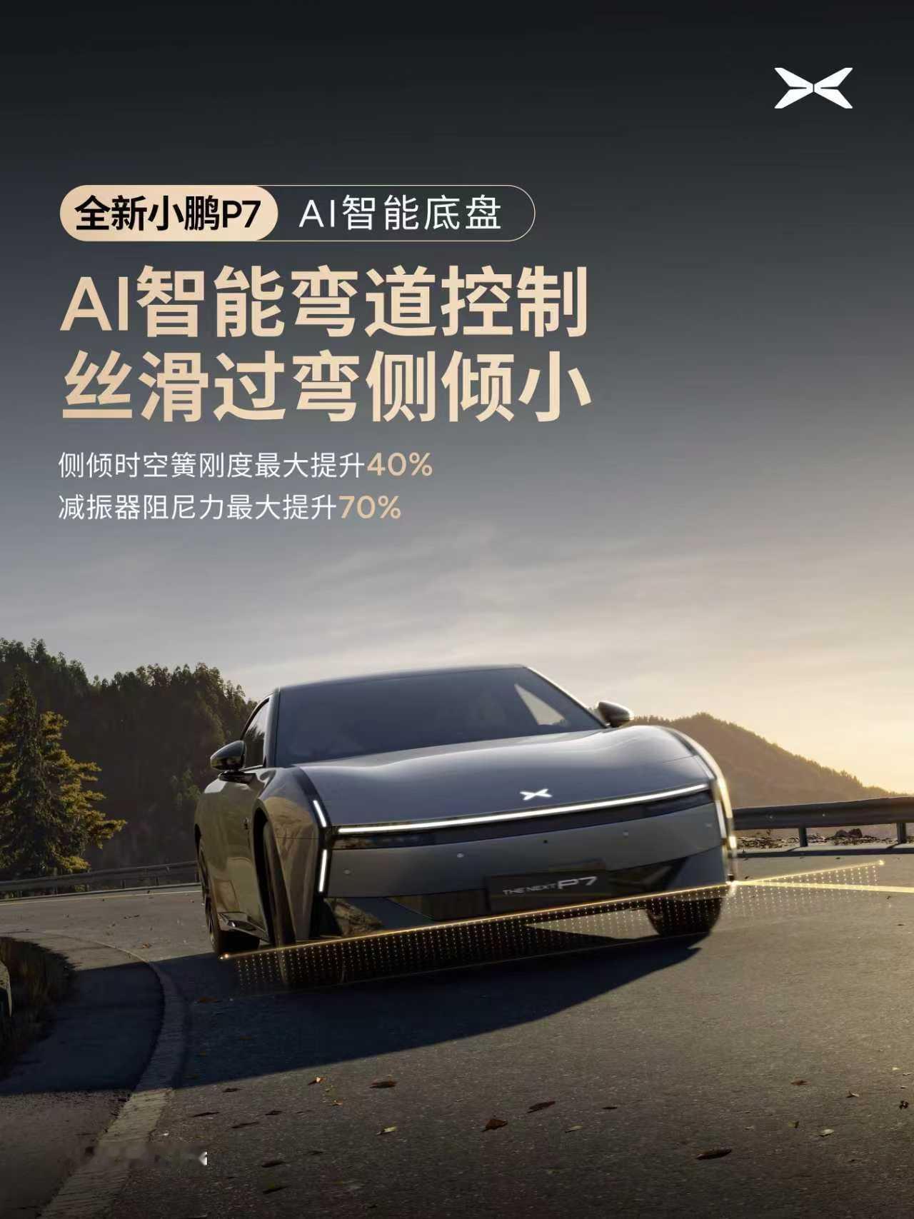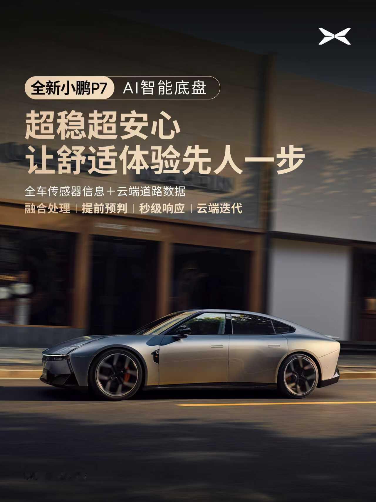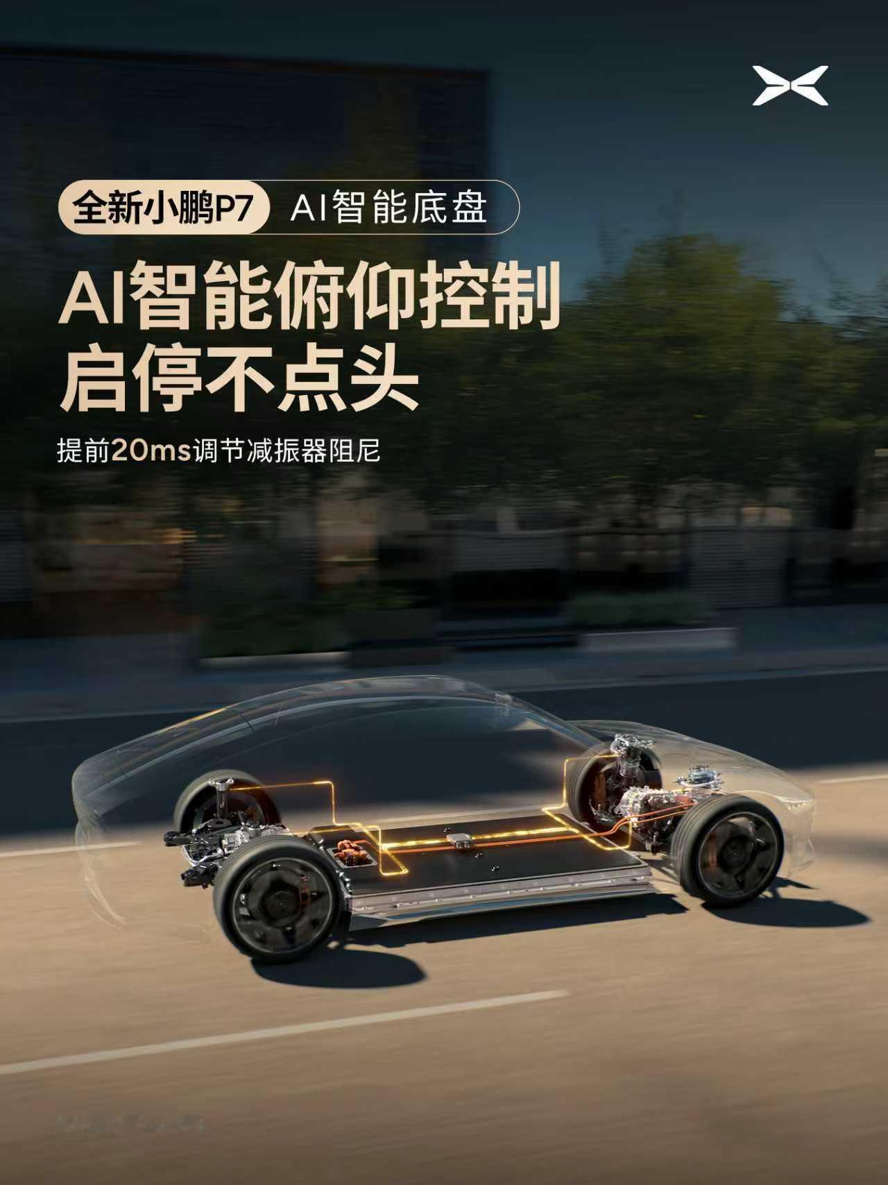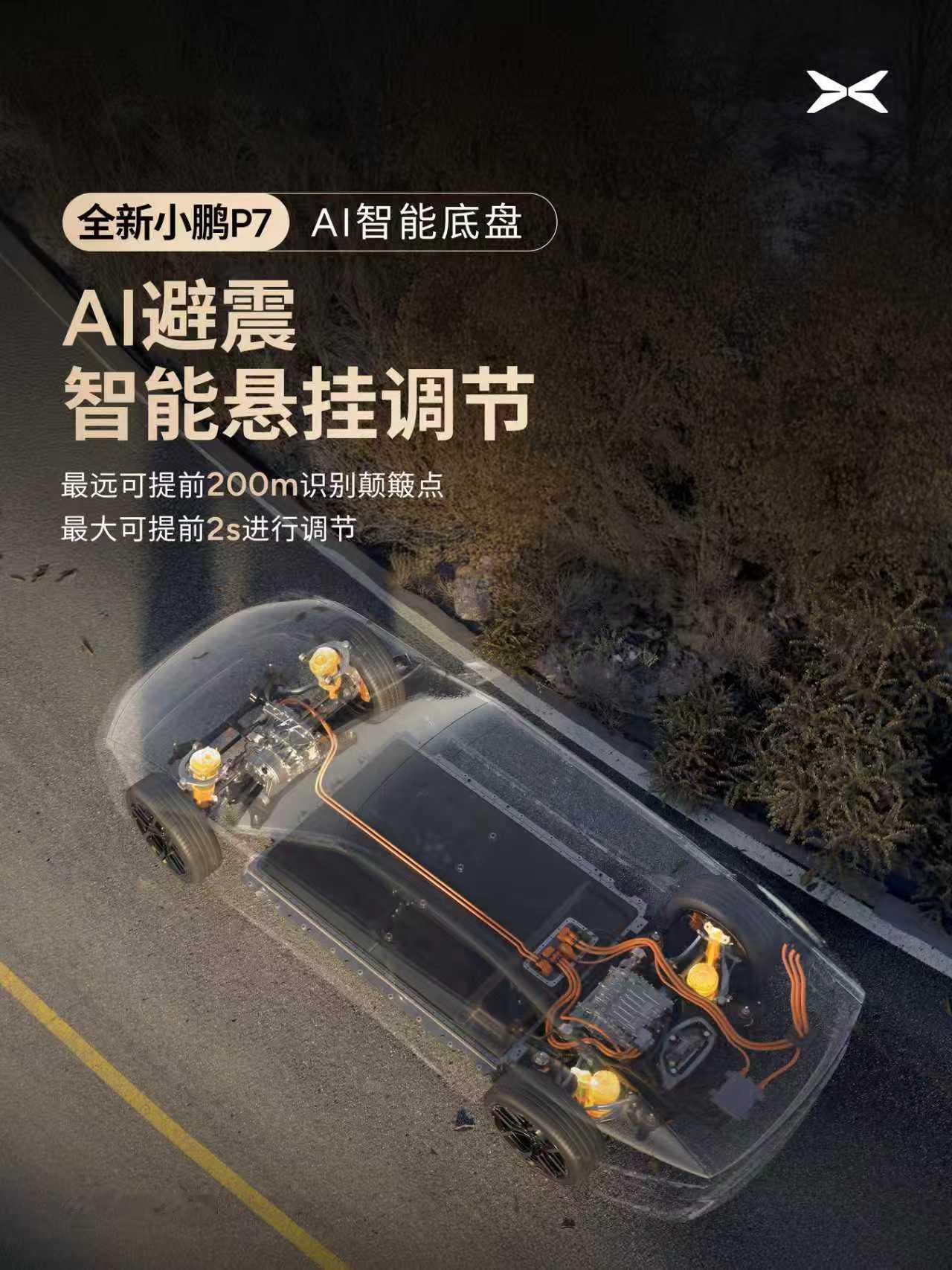 小鹏P7底盘媲美百万豪车既实现AI聪明,硬件又扎实。可以做到智能预瞄、弯道控制、俯仰控制、AI避震、云端迭代,让舒适永远快人一步!且在硬件上也很下本,用上了性能车常见的全铝前双叉臂、后五连杆独立悬架、双腔空悬等配置,更是实现超跑同款的中置电驱布局,接近完美的50:50前后重量分配,车身更稳定,操控更精准。