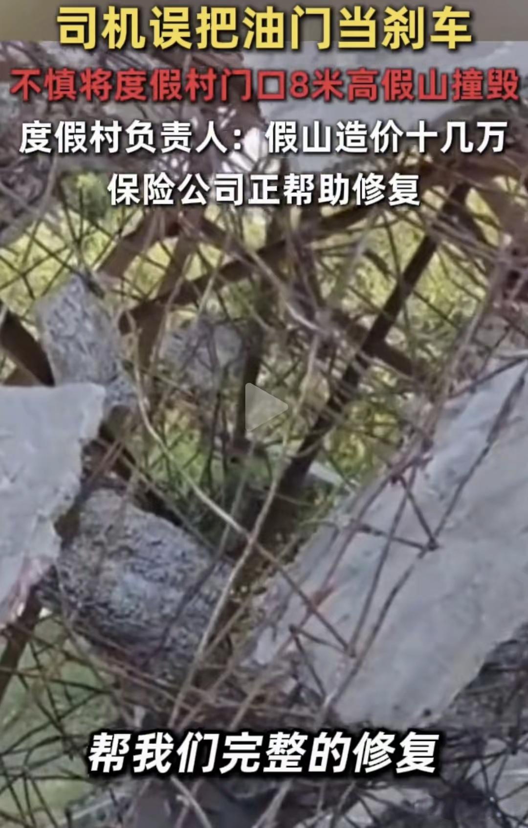 城郊度假村门口,那座8米高的青石假山一直是游客打卡的小地标——底座用混凝土浇筑,外层贴着不规则青石,顶端还嵌着几簇仿真绿植,路过的人常会停下拍张照。可没人想到,它会毁在一脚油门里。 事发当天下午,一辆轿车从度假村外的道路驶过,不知是操作失误还是注意力不集中,司机脚下油门没控制住,车辆径直冲向假山底座。“咚”的一声沉闷撞击后,围观者眼看着假山从中间裂开缝隙,接着整块山体往一侧倾斜,大块青石和碎石顺着惯性滚到路边,扬起一阵灰。等烟尘散了,原本立着的假山只剩一堆散落的石块,底座的混凝土也碎成了小块。 度假村的负责人接到消息后,急匆匆赶到现场,蹲在碎石堆里翻找——他指着一块较大的青石说,这假山当年找人设计施工,光材料和人工就花了十几万,平时还会定期派人清理表面灰尘。现在碎成这样,不仅影响门口美观,还得先拉警戒线挡住碎石,避免路人被绊倒。 好在没过多久,保险公司的工作人员也到了现场,拿着相机对着碎石堆、车辆撞击痕迹一一拍照,还跟负责人核对假山的造价明细,说会尽快走流程,协助联系施工队做修复。 目前,现场的碎石还没开始清理,不少路过的游客看到后,都忍不住拿出手机拍视频。只是没人知道,司机当时到底出了什么状况?这十几万的修复工程,又得花多久才能让假山重新立起来? 河南酒店假山