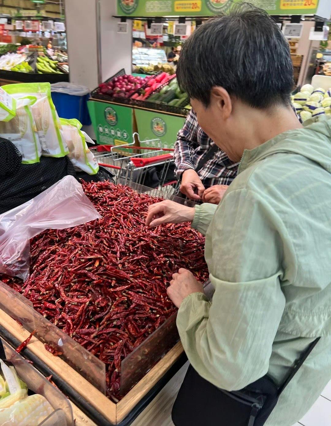 超市碰到奇葩两口子,揪掉一根一根辣椒的把子扔到辣椒堆里,只留下净辣椒,看得出都是有退休金的人,干的事却相当不要脸。干辣椒几十块一斤,丢掉把子,可以省一半的重量,肆无忌惮占商家的便宜。商家其实是有发现的,但是不想和他们起争执,只能忍气吞声,无奈摇头。辣椒子 青红干辣椒 辣椒碎