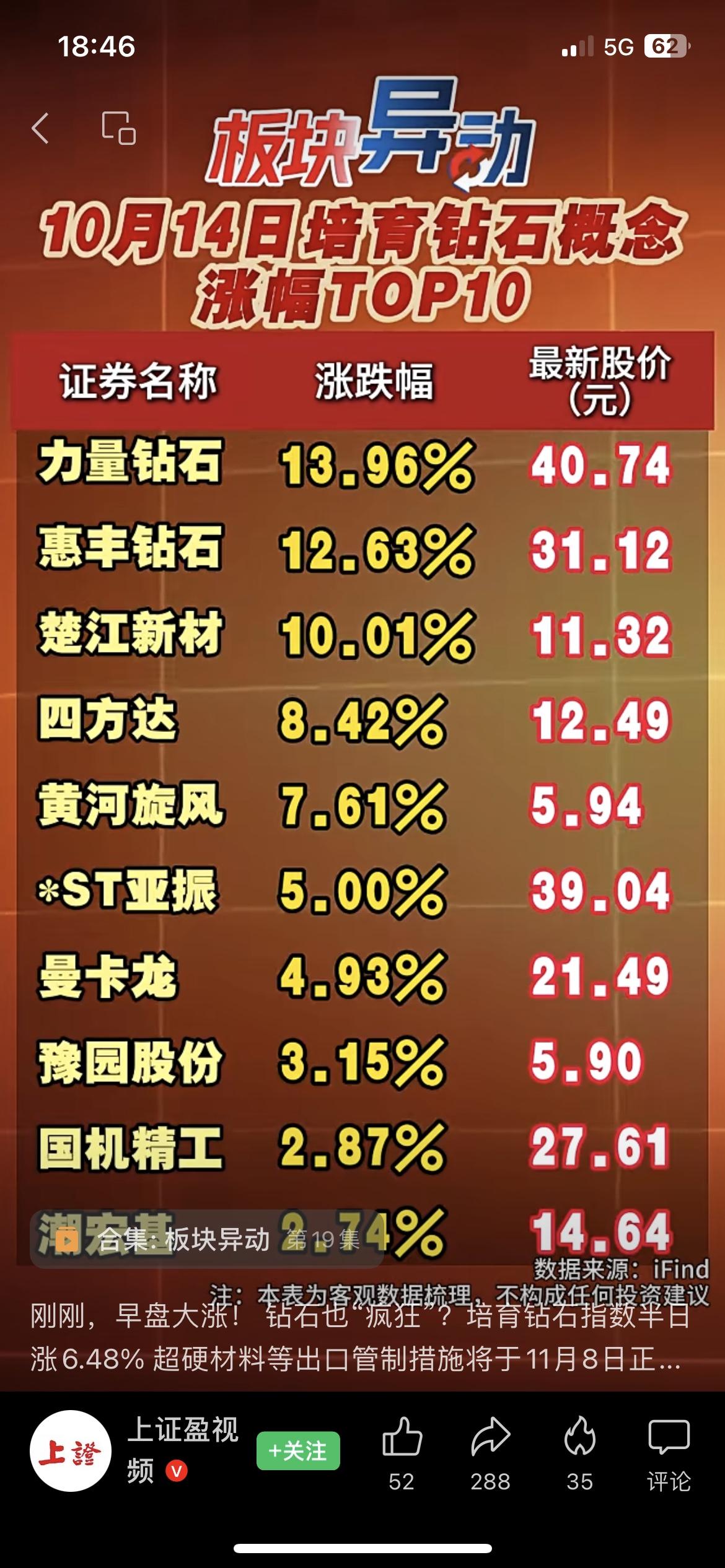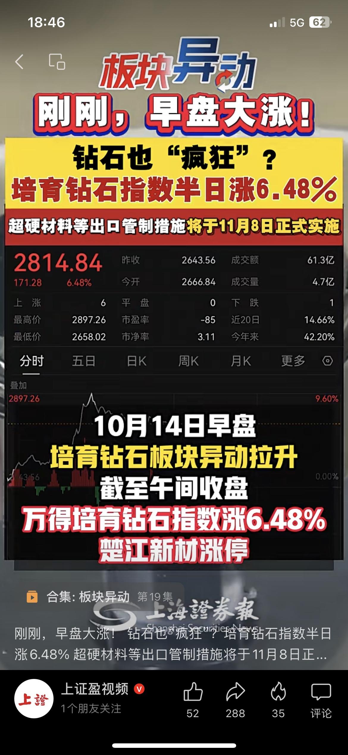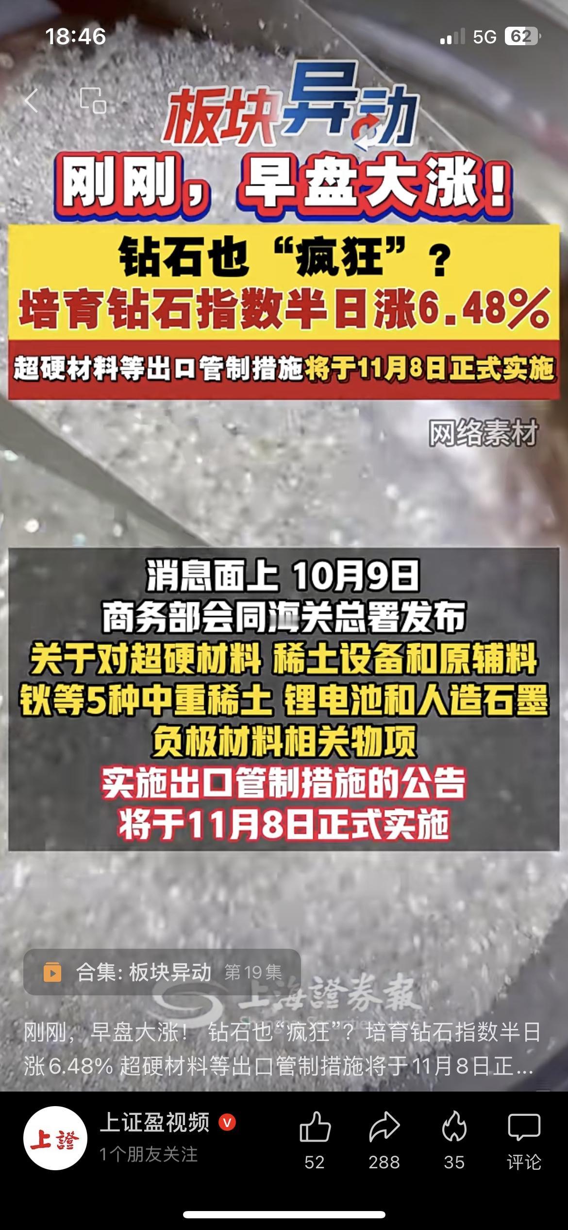 培育钻石板块大爆发!指数半日涨6.48%,政策驱动下还能涨吗? 家人们,10月14日早盘培育钻石板块突然异动拉升!截至午间收盘,万得培育钻石指数涨6.48%,楚江新材涨停,力量钻石涨超13%,惠丰钻石涨超12%,多只个股表现亮眼。 这波上涨背后有政策驱动——10月9日商务部会同海关总署发布公告,对超硬材料等实施出口管制措施,将于11月8日正式实施。培育钻石属于超硬材料范畴,这一政策对板块情绪形成了刺激。 从板块关联看,培育钻石板块涉及钻石开采、加工、销售等环节的相关个股,此次政策影响下,板块内公司的市场关注度显著提升。 从客观视角分析,政策因素引发了板块的短期活跃,但后续走势还需要结合行业需求、公司基本面等多方面因素观察。 你觉得培育钻石板块这波行情能持续吗?来评论区聊聊~ 本文仅为市场信息解读,不构成任何投资建议,据此操作风险自担 A股热点 培育钻石 板块异动 钻石行业 钻石发展 钻石价格