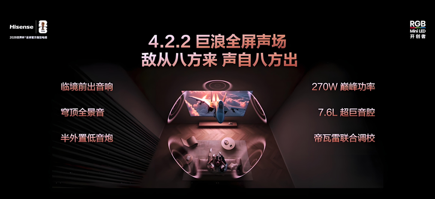 说起海信RGB-Mini LED的画质优势,可以列出一堆,比如100%BT.2020超大色彩空间、近乎100%超高色彩纯度、超高亮度和超广视角,简单讲就是红得准、绿得正、蓝得透,由于其采用RGB三色LED芯片直接显示,没有二次转换过程,因此色彩更接近于鲜活明艳的自然本色 海信E8S Pro在色彩指数上全面超越QD-OLED和QD-Mini LED,一方面得益于信芯AI画质芯片H7的卓越性能,带来3 x 10240控色分区和108bits控色精度,确保色彩和明暗细节的清晰可辨。另一方面,新一代RGB发光芯片大幅提高了发光效率,能耗比QD-OLED和QD-Mini LED降低超40%,既要高清画质,又要节能环保。