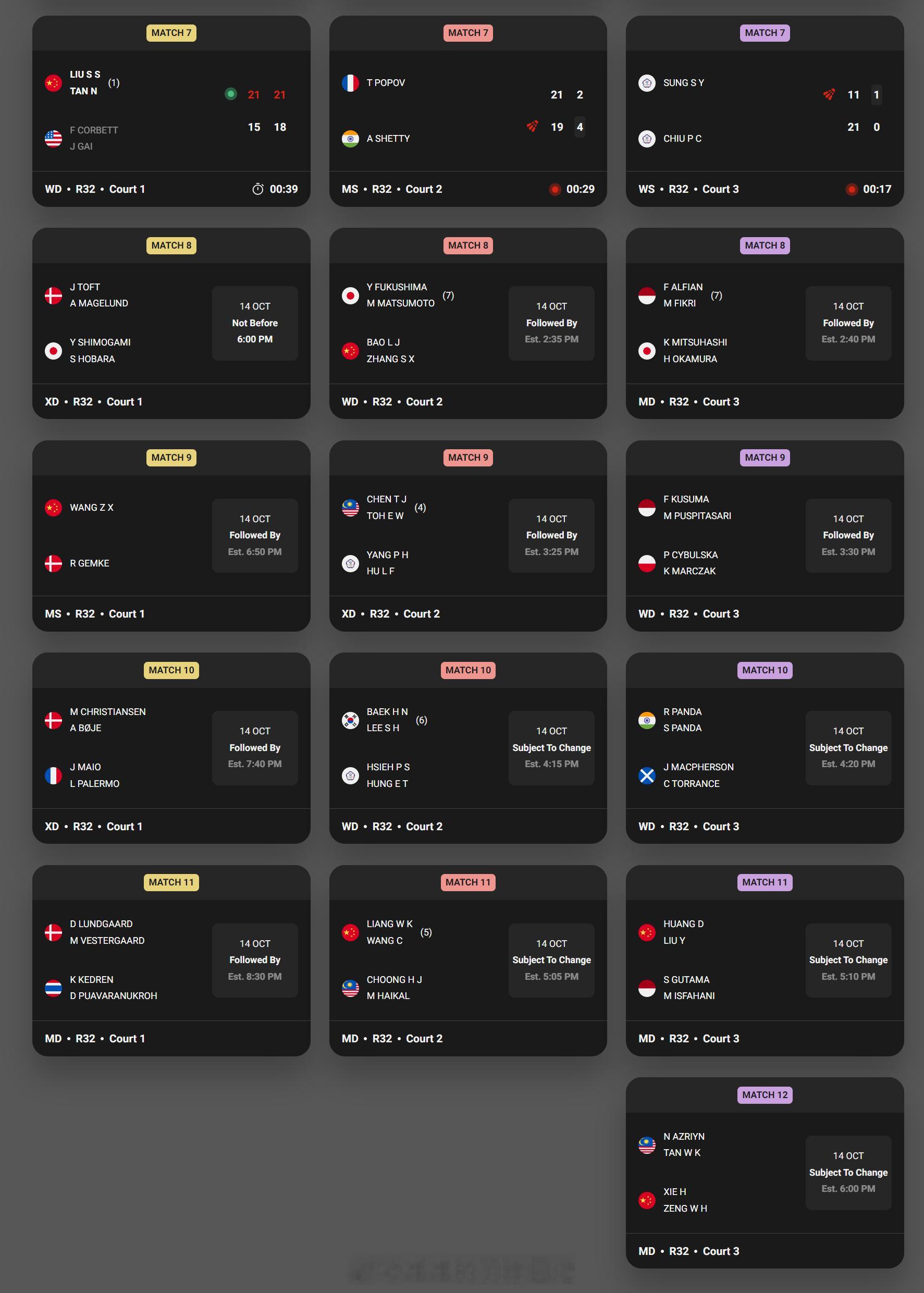2025年丹麦羽毛球公开赛 丹麦赛这个编排有点意思一号场剩下的四场比赛等到凌晨1