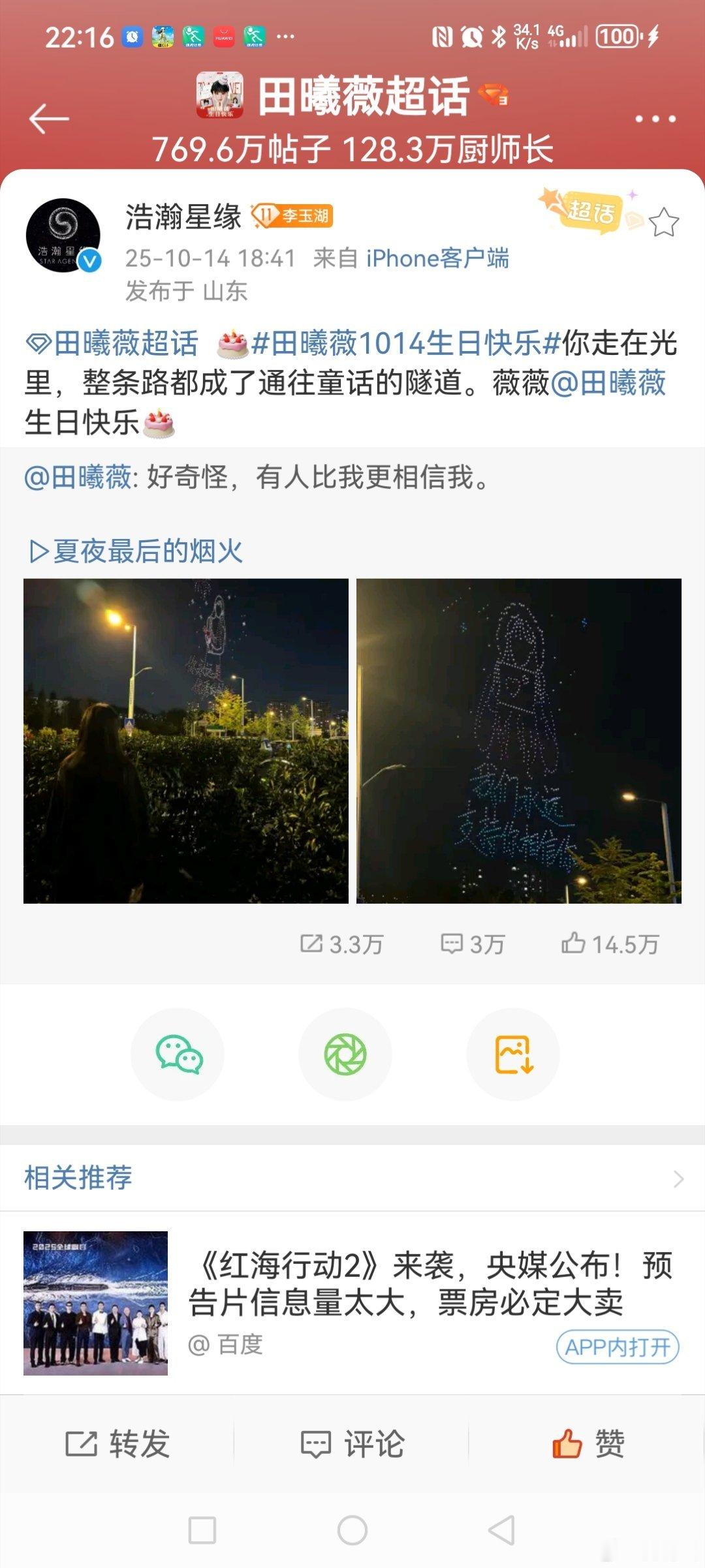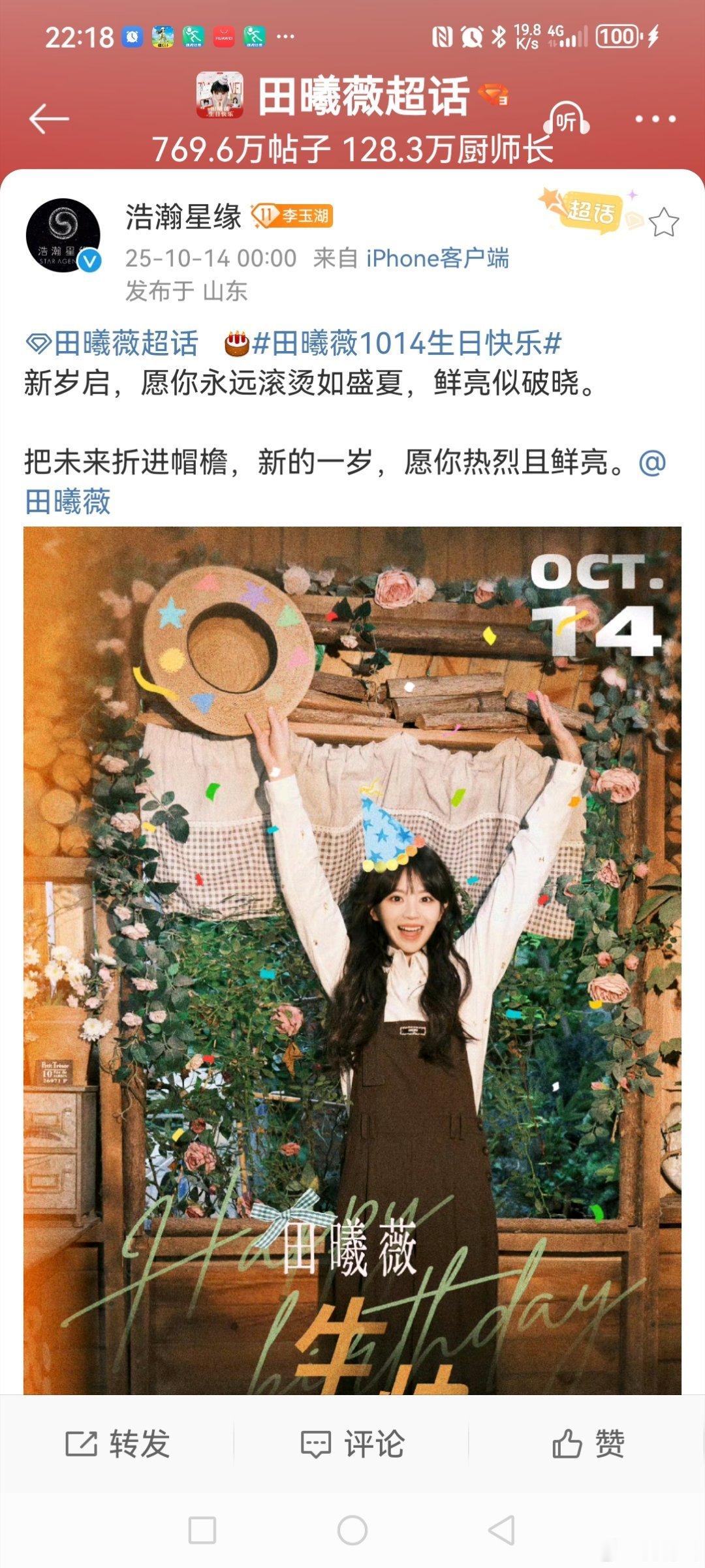 10月14日是的生日,北京浩瀚星缘影视文化有限公司官方微博为送上了生日大礼🎁,并发博为美女妹妹庆生:“你走在光里,整条路都成了通往童话的隧道。薇薇生日快乐🎂”!
