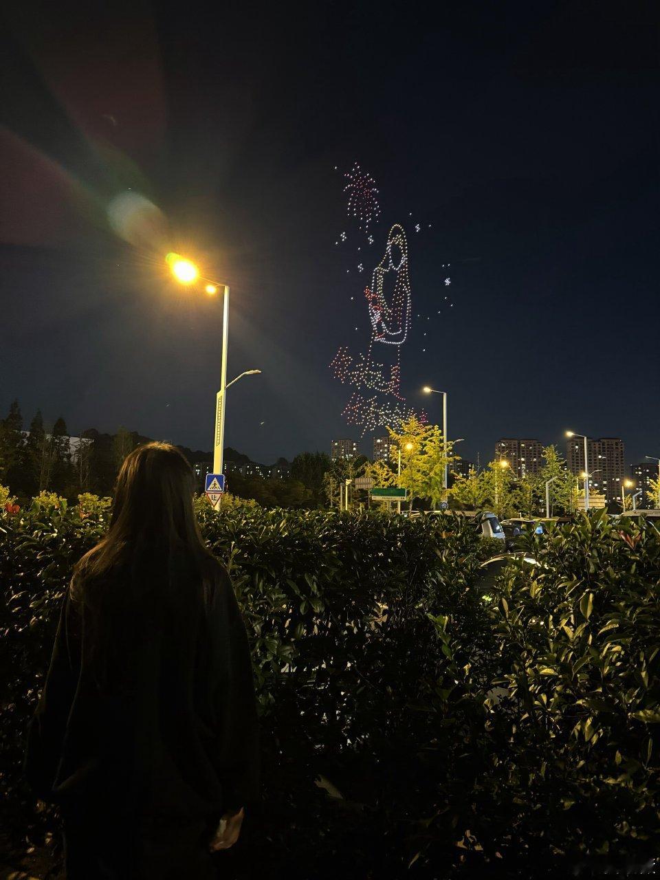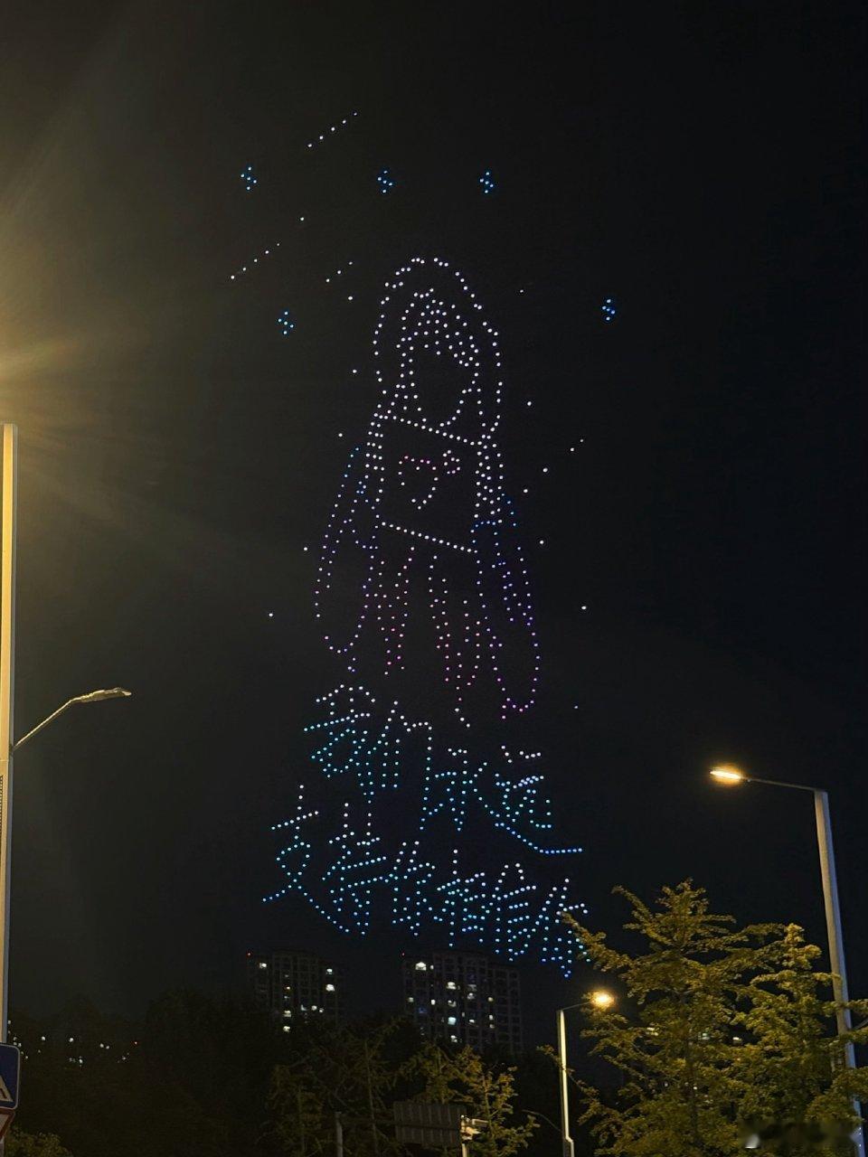 图中是无人机组成的女孩👧图案和文字“我们永远支持你相信你”。