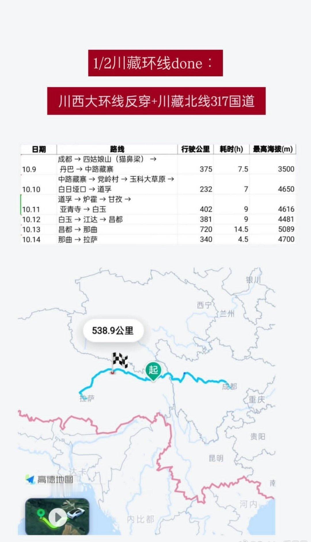 最近没咋好好更新,来汇报一下:我在专注干一件很久之前就想做的事—— 一个人自驾川藏环线⛰️🚗 从成都出发,开了6天,今天到了拉萨,完成了环线的一半——2500公里,最高海拔超过5000米,最累的一天在车上坐了将近16小时。 说来也很有趣, 其实川藏线自驾我拖了很久, 因为仰望于它的难度, 而且没听说过有谁独自开完, 只知道是要组队才能完成的路线。 再加上害怕高反, 所有这些情绪都让我对川藏线望而却步。 所以刚出发时, 我只计划完成反穿川西大环线。 一路上遇到的车友总会问:“你一个人?” 我点头,他们就笑,说:“真厉害。” 我还是点头 ;) 然后我就这样一路开着,川西的美景让我越开越沉浸,等回过神,已经是三天后。我到了四川最西边。 在那里我遇到一个户外老大哥。他觉得我可以开更远,跟我说:“你来都来了,不如开去拉萨。” 当时我们在4500米海拔的公路上,风冷得像刀,空气稀薄如丝,可我的心率却因为这个主意开始狂飙,每一次跳动都抢走一口本就不多的氧气。我忍不住问:“这会不会太离谱了?” 他拿出地图,指着路线一一告诉我该怎么走、要多花多少时间、沿途会经过哪些地方。他的语气从容又笃定,让我突然觉得,这也许真的不难。 我犹豫了一下,最后笑着调侃他: “哥,你是会忽悠人的。” 于是第二天, 本应该向南去巴塘的我, 选择了一路向西进藏。 三天后,here I am. 与今天开始顺行的冥王星遥相呼应, 它正好落在我的第9宫—— 自驾、远行、宗教与朝圣。 原来我一路行驶的方向, 正是命运早已标出的那条路。