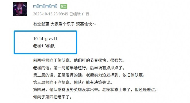 值得一提的是该网友赛前玄学预测IG1-3T1正确......
