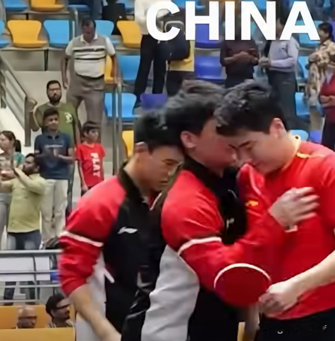 林诗栋看到梁靖崑哭了,激动得也哭了!大胖梁靖崑冲到教练组,找王皓教练要抱抱,像一个考试得了100分向爸爸要奖励的孩子一样;跟教练抱完之后,又去找队友王楚钦拥抱,大胖趴在王楚钦的肩膀上都哭了,林诗栋也被哥哥梁靖崑给感动哭了,边哭边去安慰为球队立下汗马功劳的梁靖崑!这真的是一场可以载入史册的胜利啊,相信经历这次苦战,梁靖崑、王楚钦、林诗栋、向鹏、周启豪成长会更快的!