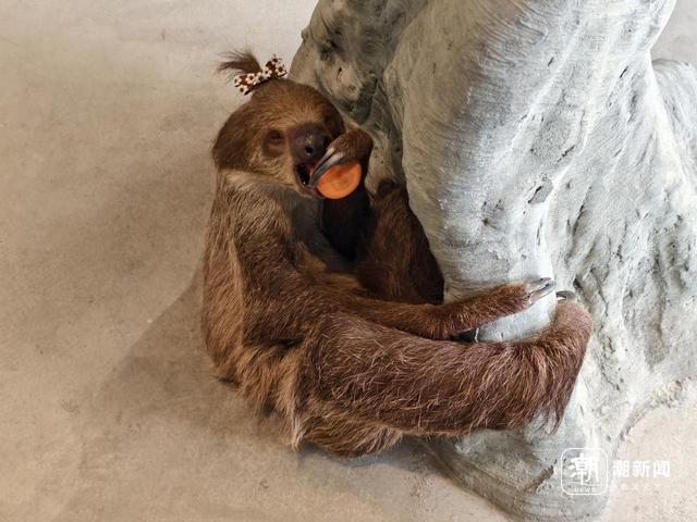 申女士在一旁目不转睛地盯着,直呼要被萌化了。“我很喜欢电影《疯狂动物城》里憨态可掬的树懒‘闪电’,能这么近距离地看到树懒,感觉真新奇!”