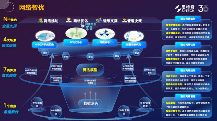 该方案以网络全量数据为基础,通过ai算法建立实时优化模型,覆盖用户投诉处理、资源动态调配、运维效率提升等核心场景,可自动分析网络运行数据,减少人工干预,快速响应用户投诉,实现用户感知提升、智能优化处置、资源配置优化、运维效率提升。