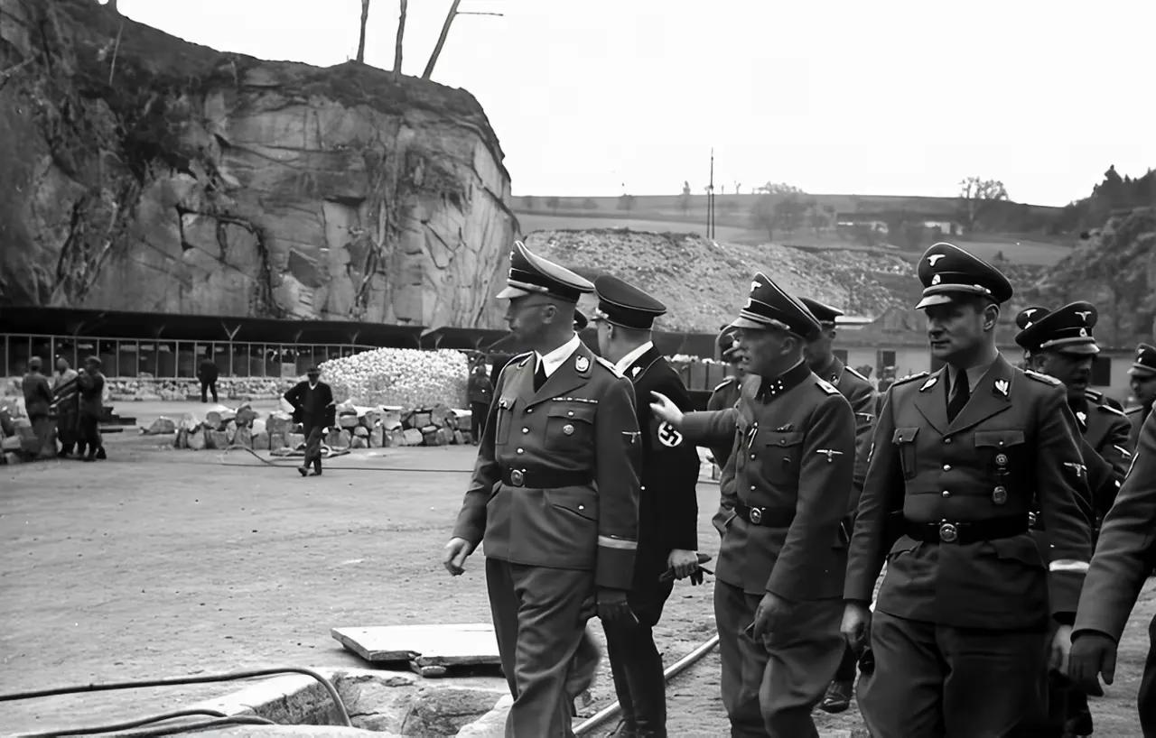 这张照片拍摄于二战时期,画面中是德国纳粹头子们正在视察采石场集中营。这些德国纳粹