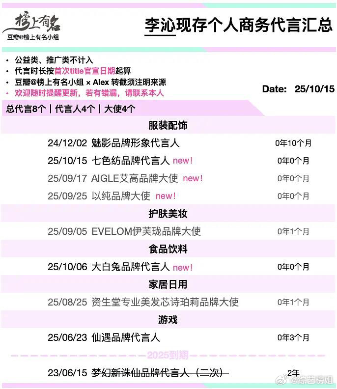 李沁花少后新增6代言李沁花少一笑随歌有效播出 李沁《花少》和《一笑随歌》算是有效播出了吧?从九月到现在李沁已经官宣了6个代言,《一笑随歌》的口碑也非常不错