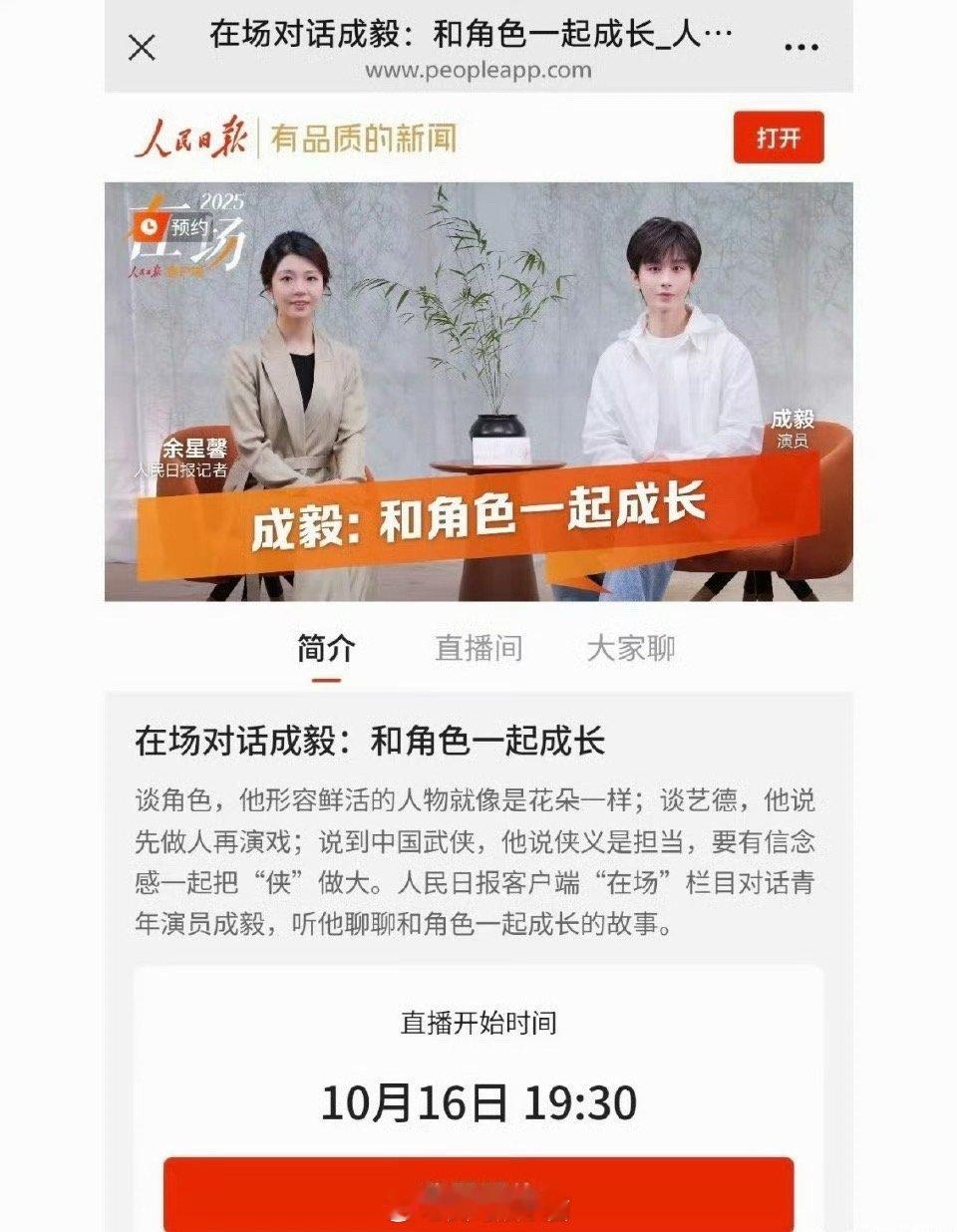 成毅[超话] 成毅明晚人民日报直播专访,这就是演员的力量