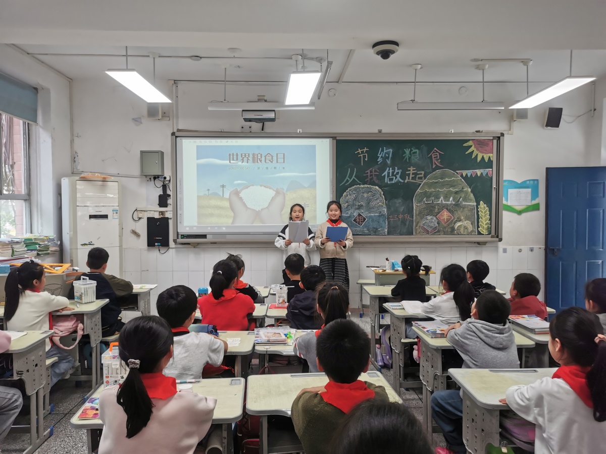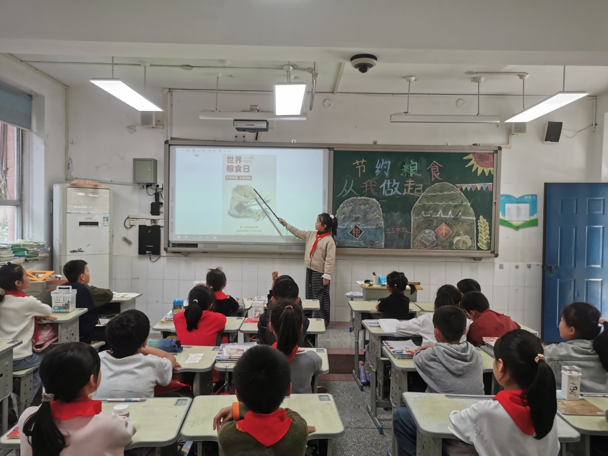 中队辅导员通过科普短片、故事分享等形式,让队员们了解世界粮食日的起源与意义——1979年联合国粮农组织设立这一节日,正是为了提醒全球关注粮食安全与饥饿问题。