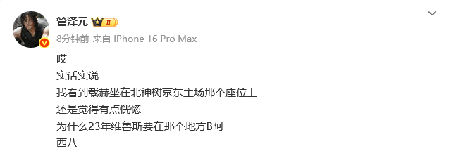 泽元:看到载赫在京东主场有点恍惚,23年韦鲁斯为什么在那B
