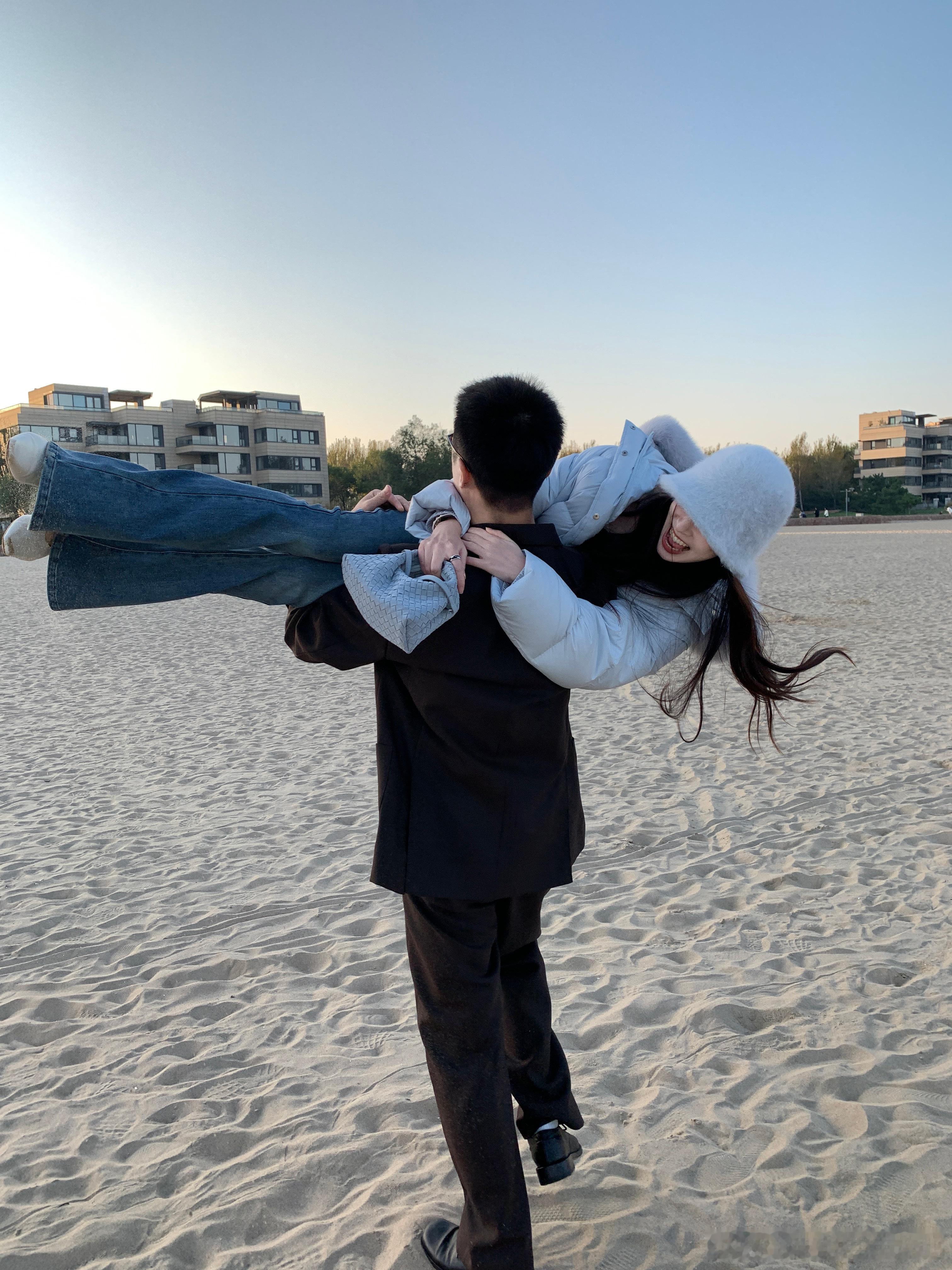 (看似男友力max,其实每次沙滩走到一半就已经累得把我放下来了哈哈哈🙊)