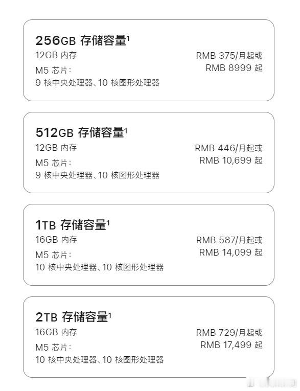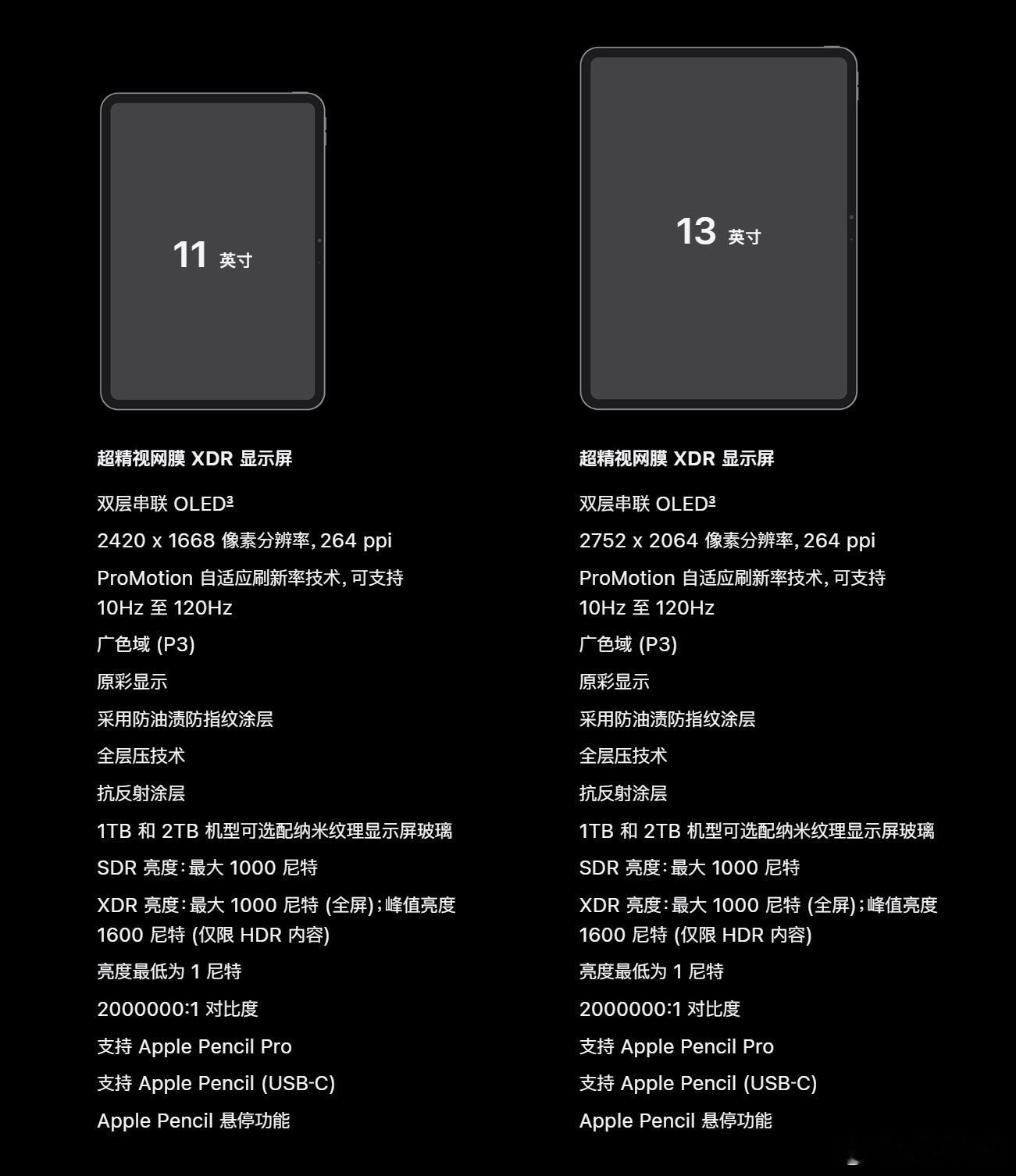[哆啦A梦吃惊]M5 iPad Pro官网直接上架了,依然是11和13英寸两个版本,双层OLED屏幕,SDR最高1000nit,HDR最高1600nit。M5搭载3个性能核心和6个能效核心,10核GPU,16核神经网络引擎,12GB内存。