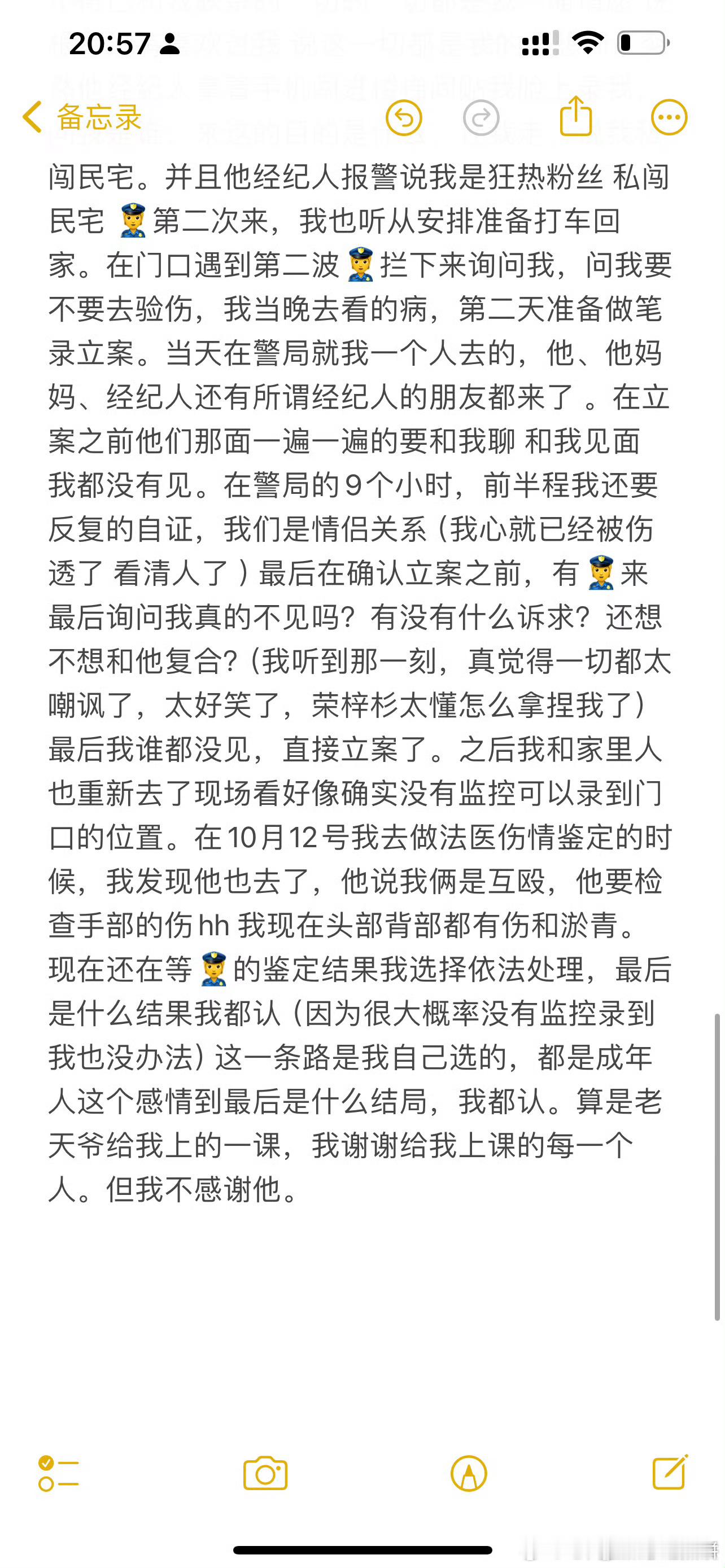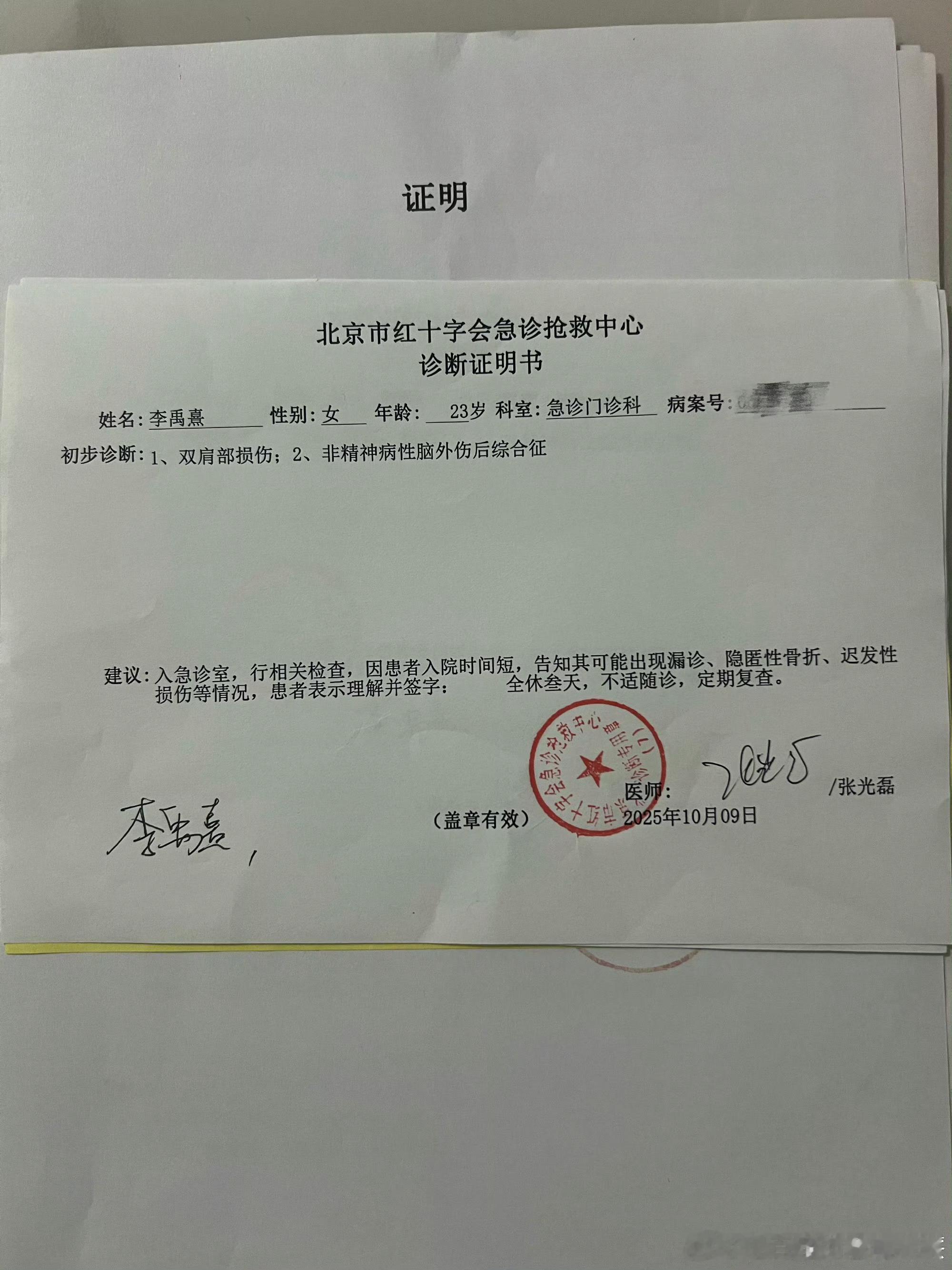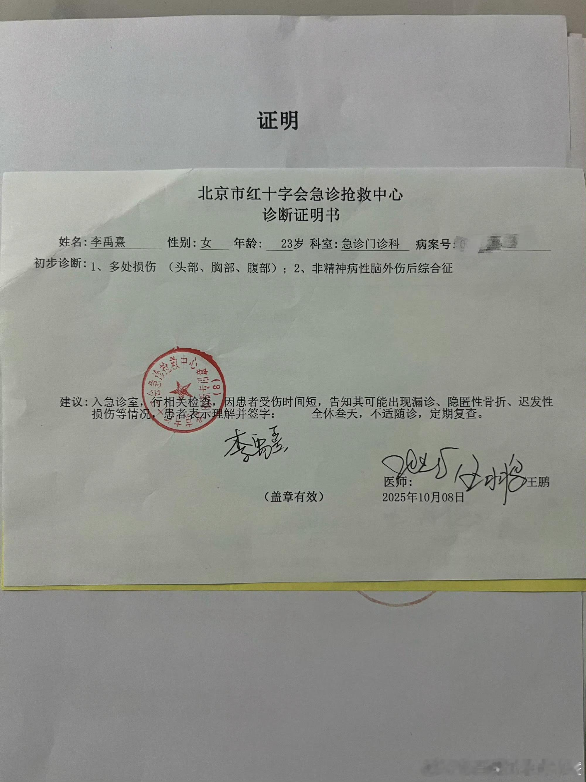 有女演员李禹熹发微博长文控诉荣梓杉,文中称荣梓杉在两人恋爱期间出轨打人,还公开了报警记录和诊断证明书