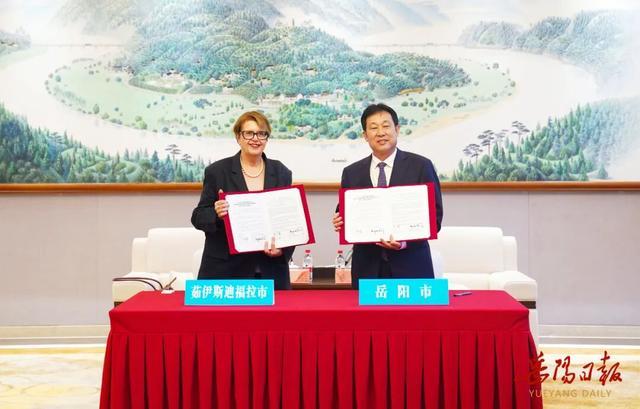 李挚代表市委、市政府对玛加丽达·萨洛芒一行的到访表示欢迎,并介绍了岳阳经济社会发展情况。他说,岳阳是国家区域性中心城市和省域副中心城市,历史悠久、区位优越、产业强劲、生态优美、宜居宜游,当前正在加快构建“1+3+X”现代化产业体系。岳阳市和茹伊斯迪福拉市都是区域工业城市、交通物流枢纽和历史文化名城,产业发展方向高度契合,合作前景广阔。希望双方建立常态化沟通机制,加强民间互动交流,进一步深化经贸、教育、文旅等多领域务实合作,实现优势互补、共赢发展。