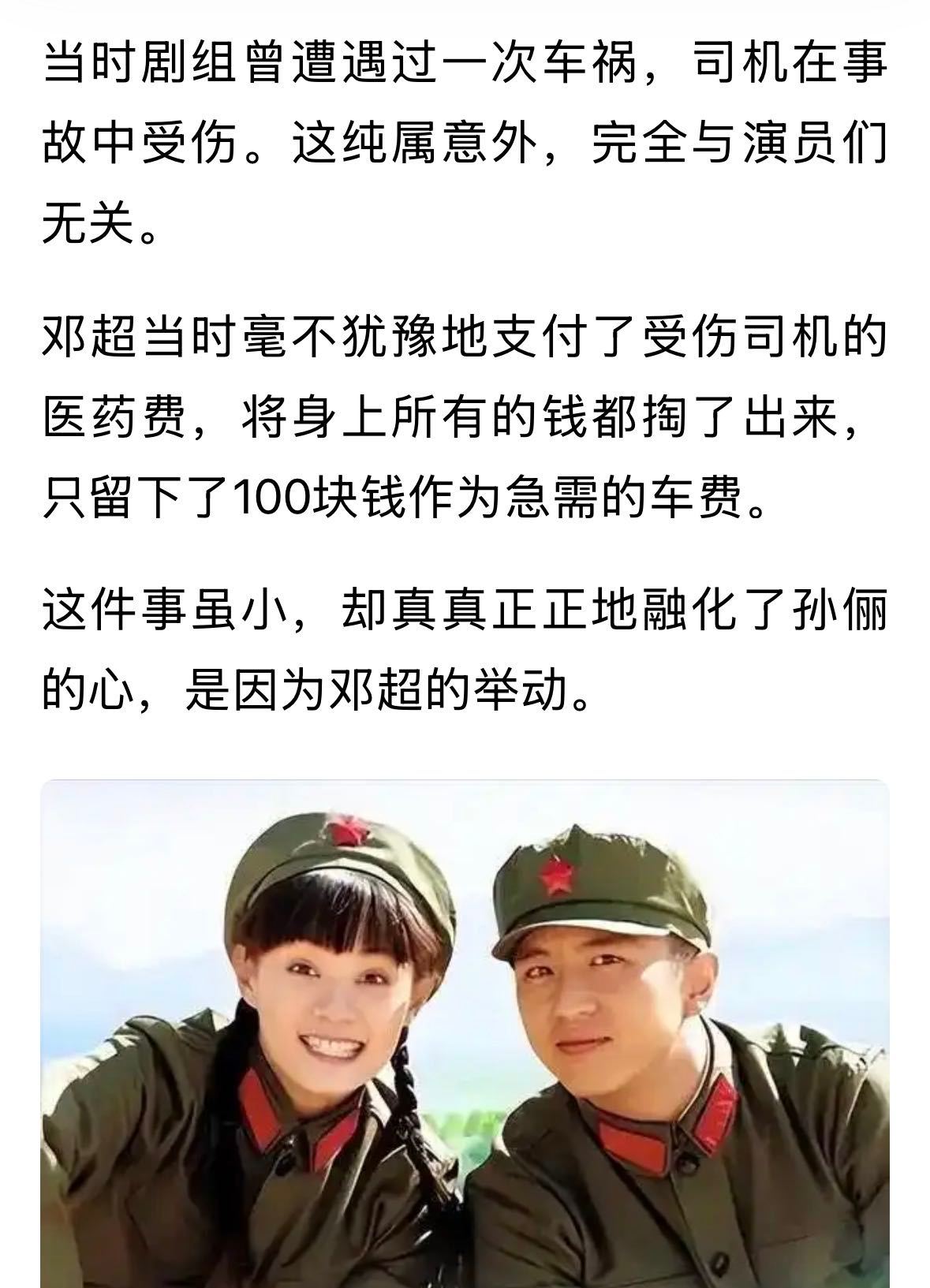 20年前剧组有人车祸,邓超捐光了钱,只留下100块回家路费。正是这份善良,让孙俪真正注意到邓超。