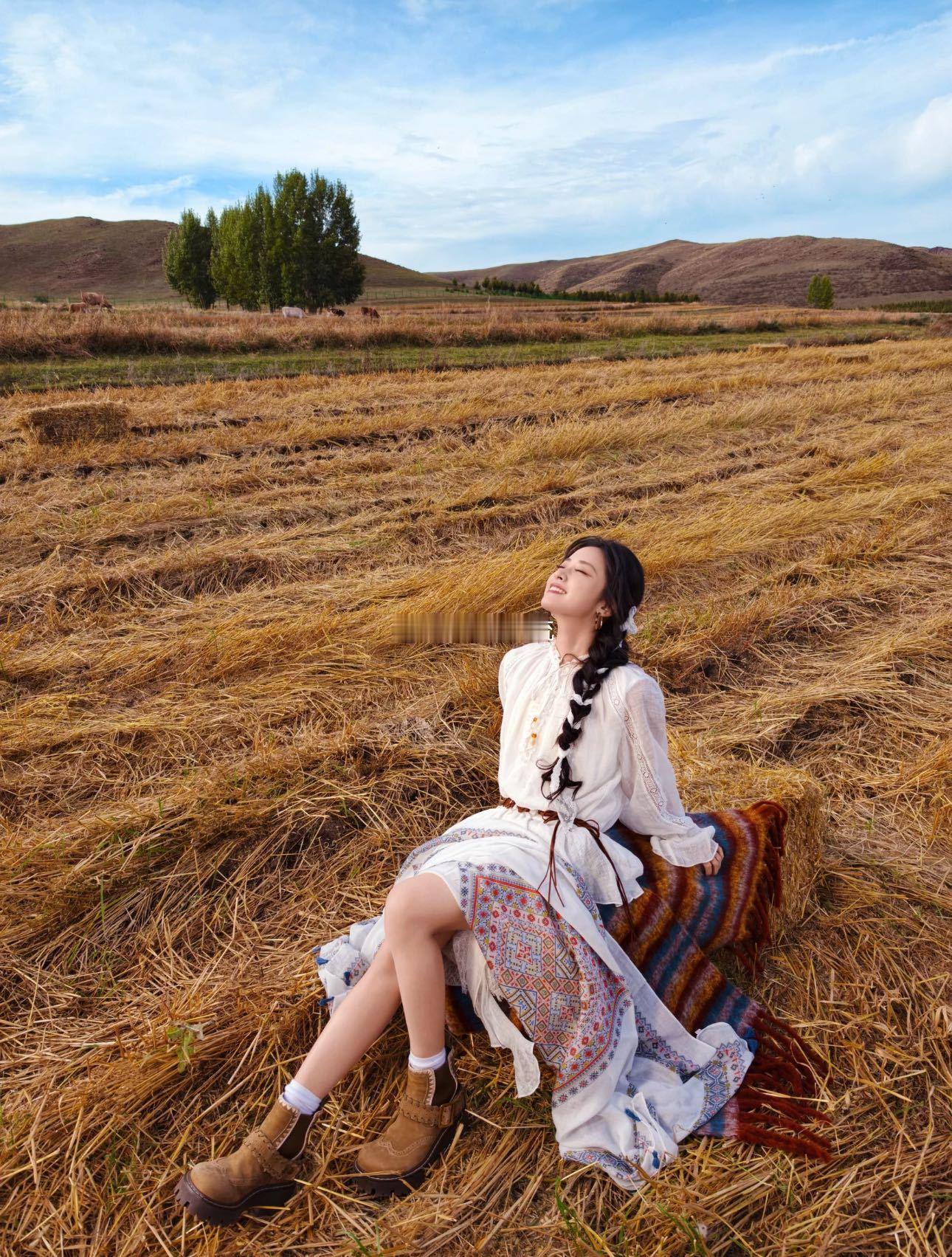 她静静举着相机,却把草原的治愈与少女的灵动揉成了模板级画面:蓝天下的白裙是最干净的底色,牛羊是流动的点缀,连风都在配合着扬起发丝,每一帧都像把“岁月静好”拍活了。