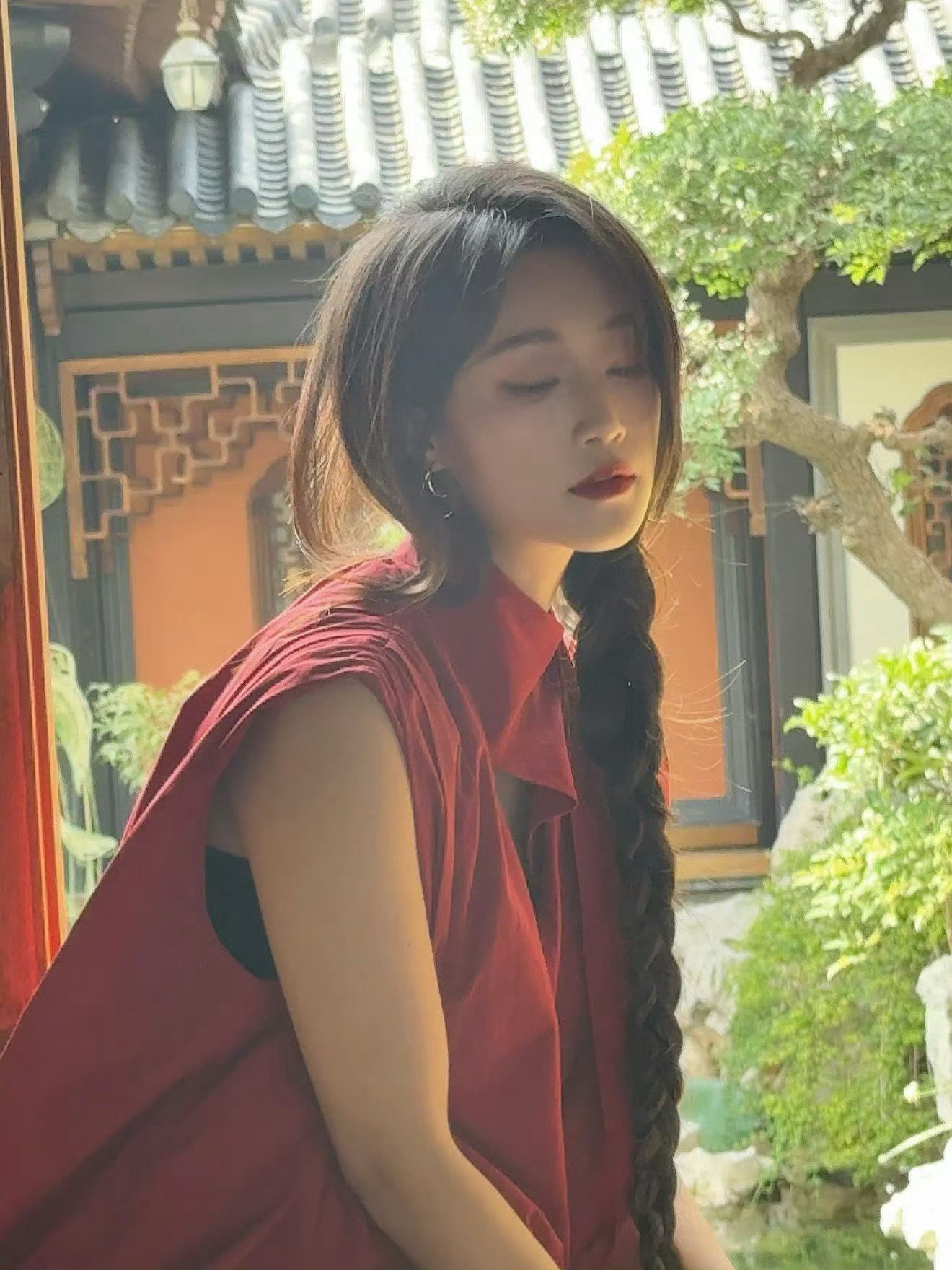 真是很有气质又优雅的姐姐呀 蓝盈莹好漂亮的长辫子,好温婉古典[期待]