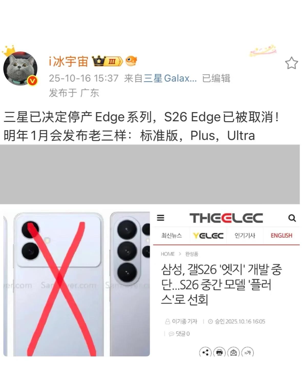 三星的 Edge 超薄机型被砍掉了。 其实相比iphone air,edge才是能用的那个,至少有超广角,双扬声器edge最大的问题是太老实,应该像iPhone一样背板和屏幕都偷点面积,把边框做窄点,再上点弧度,显得更薄。目前edge观感上不够薄,而且镜头deco说实话太朴素了,镜头岛设计成撞色好一点。