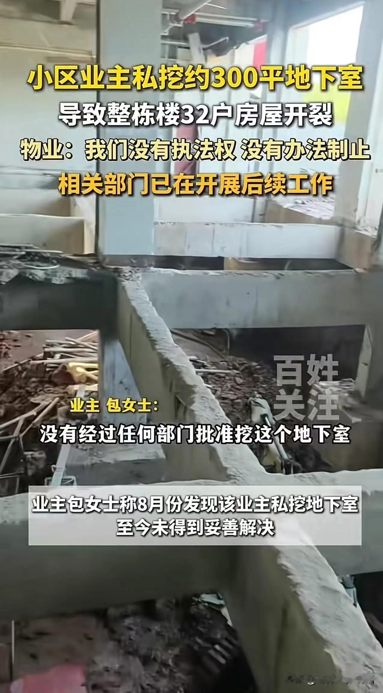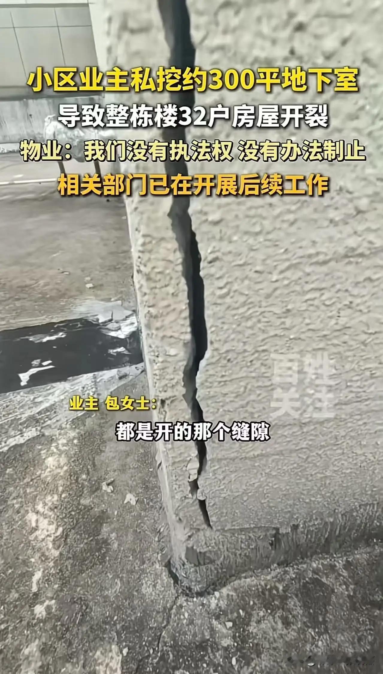 “跟这种人做邻居,真是倒了八辈子霉!”小区业主私自挖掘了约300平方米的地下室,导致整栋楼32户人家的房屋墙面都出现了开裂的情况,住户们每天都提心吊胆,生怕哪天房子就塌了。而物业呢,却一脸无奈地表示:“我们没有执法权,没办法制止!” 然而,这样的“邻居”事件,远远不止于一场简单的邻里纠纷。它折射出的是我们社会中一些深层次的问题:规则的缺失、责任的缺位,以及公众安全意识的淡漠。更令人震惊的是,物业公司面对如此严重的安全隐患,却束手无策,仿佛成了“无声的旁观者”。这背后,隐藏着多少潜在的危险与无奈? 我们不得不问:为什么会出现这样的“任性”行为?为什么没有一个强有力的监管机制将这种危害控制在萌芽状态?更令人愤怒的是,那些被“倒霉”邻居的房屋墙壁裂开、房屋安全受到威胁的居民们,似乎成了被遗忘的牺牲品。我们每天生活在钢筋水泥的城市中,却仿佛成了规则的旁观者,缺乏应有的保护与尊重。 其实,类似的事情并非个例。城市的快速发展带来了繁忙的生活节奏,也让一些人为了“方便”或“节省”私自突破底线,挑战法律的底线。可是,正如我们常说的:“没有规矩,不成方圆。”没有制度的约束,再坚固的房子也会变得摇摇欲坠。 更令人深思的是,面对这样的“倒霉邻居”,我们是否也在某种程度上成为了旁观者?是不是在日常生活中,我们也曾对一些违规行为视而不见?我们是不是也在某些时刻选择了“忍让”,而没有站出来维护正义?这不仅仅是个别人的问题,更是我们每个人的责任。 这起事件,应该成为我们反思的契机。城市管理者、物业公司、业主们,都需要重新审视自己的职责。只有建立起更为严格的监管体系,强化法律意识,才能真正保障每一个居民的安全与权益。更重要的是,每个人都要有“守规则、讲责任”的意识,让我们的社区不再成为“倒霉邻居”的温床,而是一个充满温暖、安全、和谐的家园。 我们不能让“倒霉”成为常态,更不能让“安全”成为奢望。只有每个人都行动起来,守住底线,守住责任,才能让城市的每一角都充满希望与正能量。毕竟,只有大家齐心协力,才能筑起一道坚不可摧的安全防线,让那些“倒霉”的邻居,成为过去式。头号周刊 小区地下室
