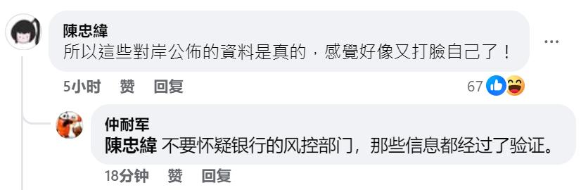 被厦门公安通缉的18只蛙兵,在台湾省无法贷款借钱了。[笑哭] 据台媒消息:台独蛤蟆王定宇称,有相关机敏单位服役的人员,在离退之后要办理保险、贷款,被以“中国大陆有发布通缉当理由,拒绝核贷”。 前两天,一群台独1450造谣这是大陆的“AI图”“假新闻”,结果现在大翻车。再次印证,大陆对台独蛤蟆是掌握得清清楚楚的。