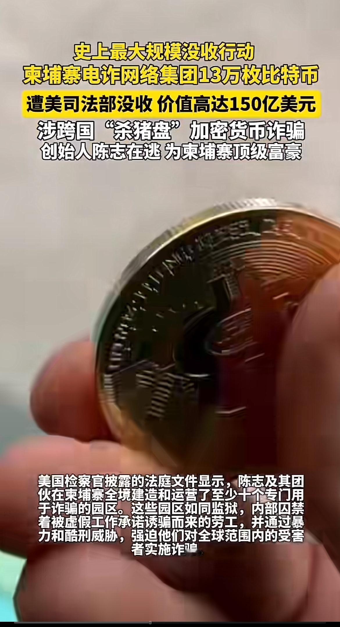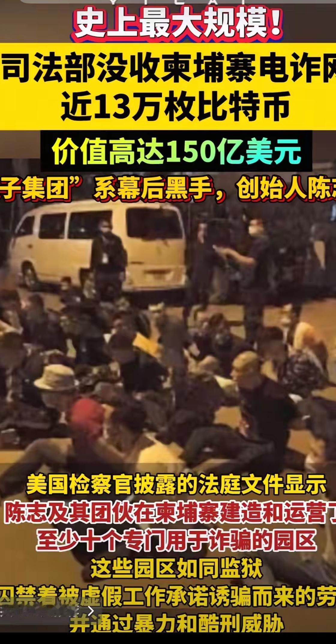 暗网案件约4.8亿美元的查获金额。 案件核心人物是“太子集团”创始人陈志,他面临电信欺诈和洗钱等多项罪名,若成立最高判40年监禁。美国司法部长称这是对全球人口贩卖和网络金融欺诈的重大打击。“太子集团”虽宣称业务广泛,但实际是犯罪组织,在柬埔寨建了至少十个诈骗园区。这起电诈案金额惊人,犯罪规模令人咋舌。