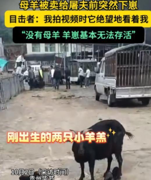 “万物皆有灵!” 近日,贵州毕节,一女子拉着羊到市场上卖,刚卖给屠夫 48 岁的王大姐攥着屠夫递来的 720 块钱,指节都捏白了,钱还没揣进兜里,就听见身后 “咩” 的一声急叫 —— 她拉来的母羊突然前腿一跪,肚子猛地收缩起来; 她还以为羊被市场的噪音惊着了,赶紧转身想安抚,脚刚迈出去,就看见两只粉嘟嘟的小羊羔裹着透明胎膜,“噗通” 掉在水泥地上,母羊立刻转头,用舌头飞快舔舐小羊身上的黏液; 屠夫老李也愣了,手里的杀猪刀 “当啷” 放在案板上,围着看的卖菜商贩都凑过来,张阿姨递了包纸巾给王大姐,“妹子,这羊咋偏偏这时候生了?你这钱还没捂热呢”; 王大姐蹲在地上,手想碰小羊又缩了回去,声音带着颤,“我哪知道啊?这羊养了大半年,上周给它添料时还好好的,哪想怀着崽”; 她是毕节七星关区田坝村的,儿子在县城买了房,催她搬过去帮忙带孙子,家里的羊圈要拆,她找了好几天邻居,没人愿意接手,才想着拉到市场卖了; 老李挠着头,看着母羊护着小羊的样子,“大姐,这情况我也没遇过,你要是想把羊拉回去,我把钱退你,毕竟小羊刚生,离了娘活不了”; 王大姐眼泪差点掉下来,她掏出手机翻出儿子发的租房照片,“你看,那房子就个小阳台,连洗衣机都得放阳台,哪能养三只羊?我总不能让小羊跟着我挤公交吧”; 旁边卖猪肉的陈哥插了句,“我听畜牧站的人说,新生羔羊得吃母羊奶至少 20 天,不然存活率不到三成,你要是带回去,没条件喂啊”; 这话戳中了王大姐的难处,她摸了摸母羊的头,母羊像是懂了,用头蹭了蹭她的手背,眼睛直勾勾盯着她,那眼神让她心头发酸; 她咬了咬牙,把钱又塞回老李手里,“李师傅,这羊还是给你吧,你有经验,多给母羊添点好料,让小羊活下来就行”; 老李赶紧点头,从案板下翻出个旧木箱,铺了层干草,小心翼翼把小羊抱进去,“你放心,我每天给母羊加两把黄豆,保证把小羊养得壮壮的”; 后来有商贩把这一幕拍了视频发网上,有网友说 “咋不赎回来?好歹是条命”,王大姐看到评论,跟儿子视频时说 “赎回来我带哪去?老李是实在人,总比小羊饿死强”; 毕节市畜牧兽医站的工作人员看到视频后,还特意去市场找老李,给了他一袋羔羊专用代乳粉,说 “要是母羊奶不够,就用这个补,别让小家伙们遭罪”; 你们要是遇到这种情况,会像王大姐这样托付给屠夫,还是会咬牙想办法把羊带回家呢; 信息来源:毕节晚报 2025-10-15《市场卖羊遇母羊产羔 市民善意托付暖人心》;