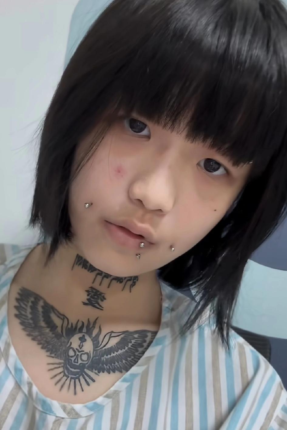 女孩问脖子上的纹身可以洗掉吗?就是洗来完全看不见的那种, 去把嘴上的,脸上的钉钉都去掉吧!做个清清爽爽的女孩子,纹身,喝酒,抽烟,泡夜店,这些事情看起来很酷,但其实一点难度都没有,只要想随时都可以。 真正酷的是那些不容易办到的事,比如,读书 ,赚钱,健身,用炽热真诚的心爱人爱己,然后用毕生的精力去探索一个领域。 发现了,女孩子叛逆起来比男孩子更可怕,这样的孩子99%都是单亲家庭或者孤儿