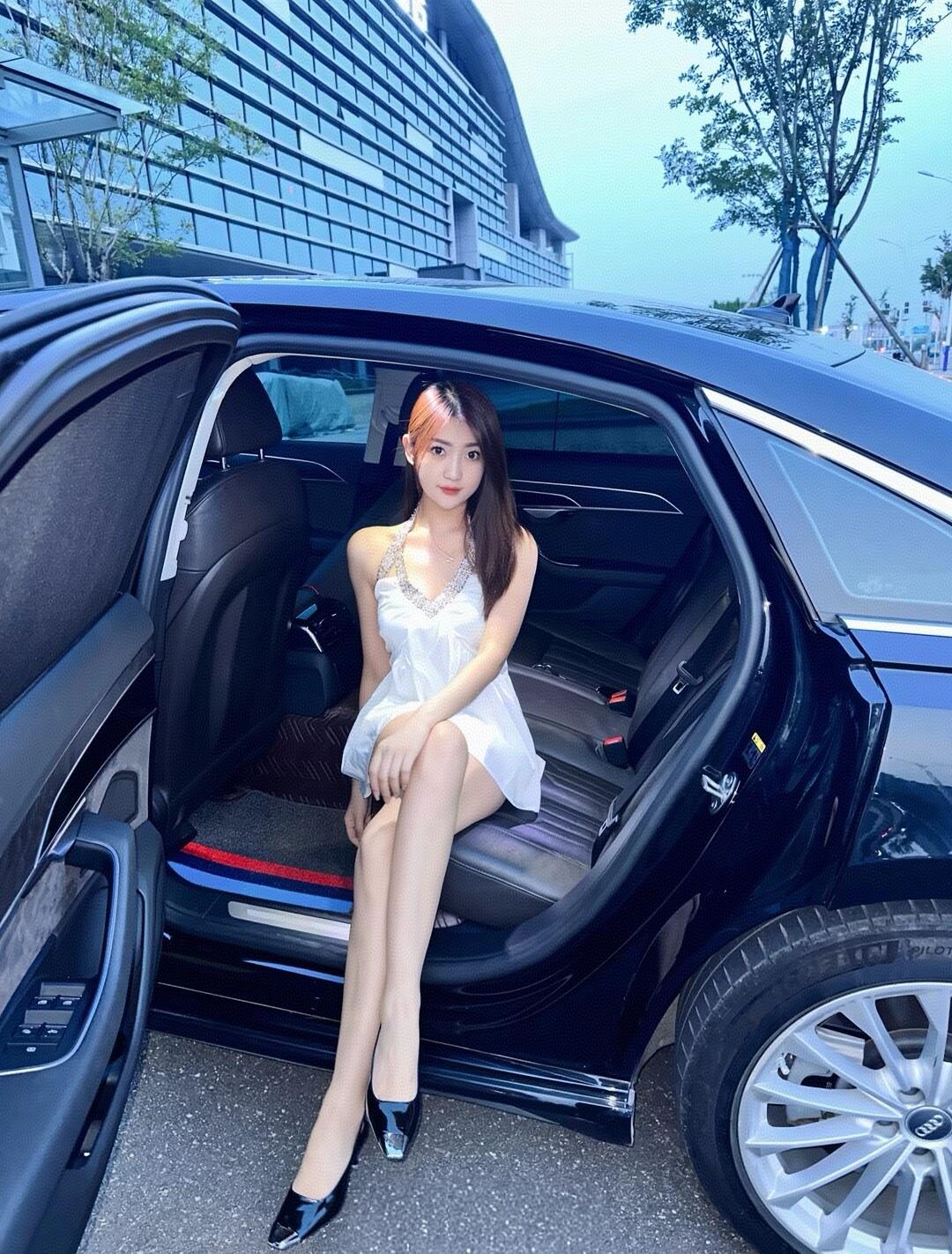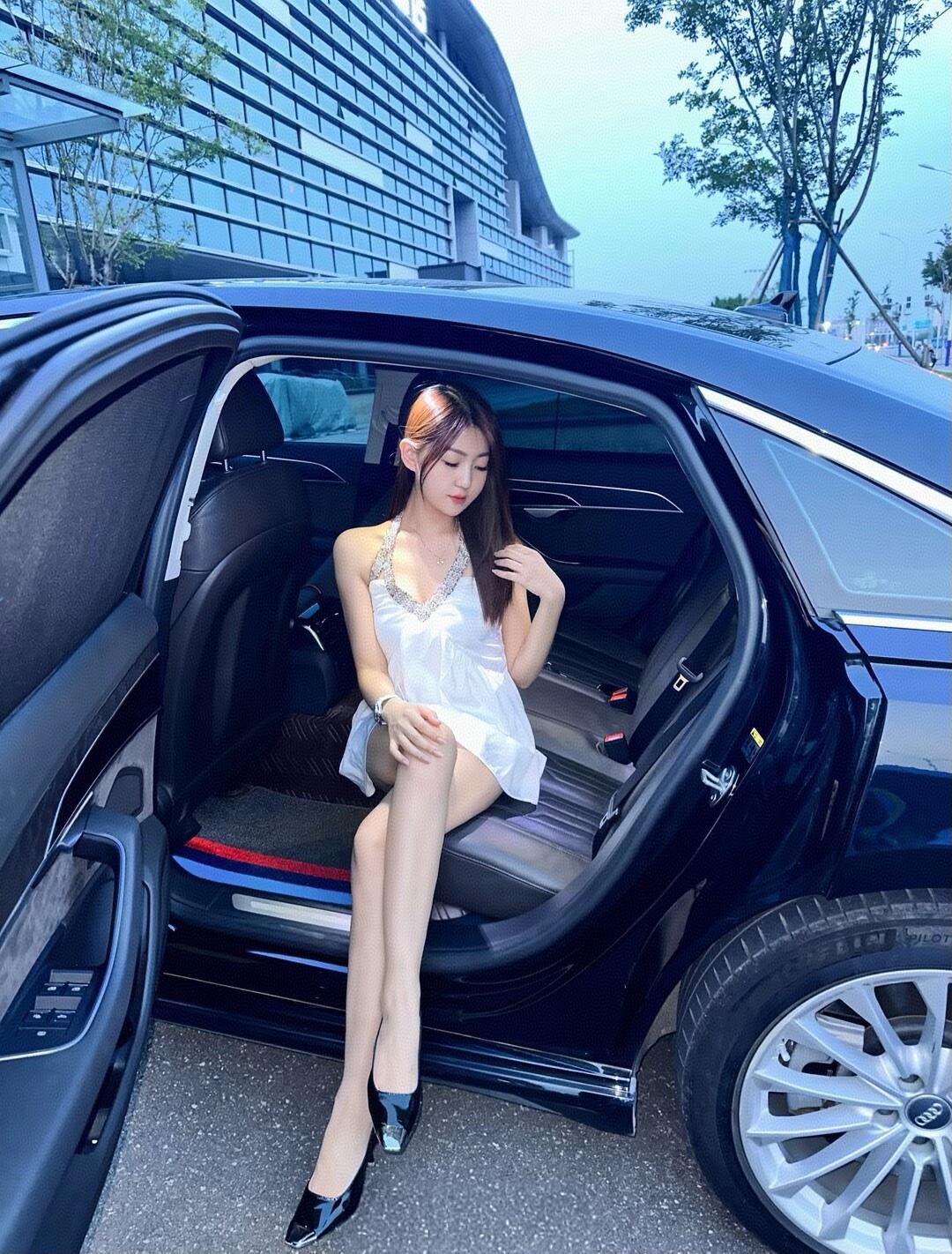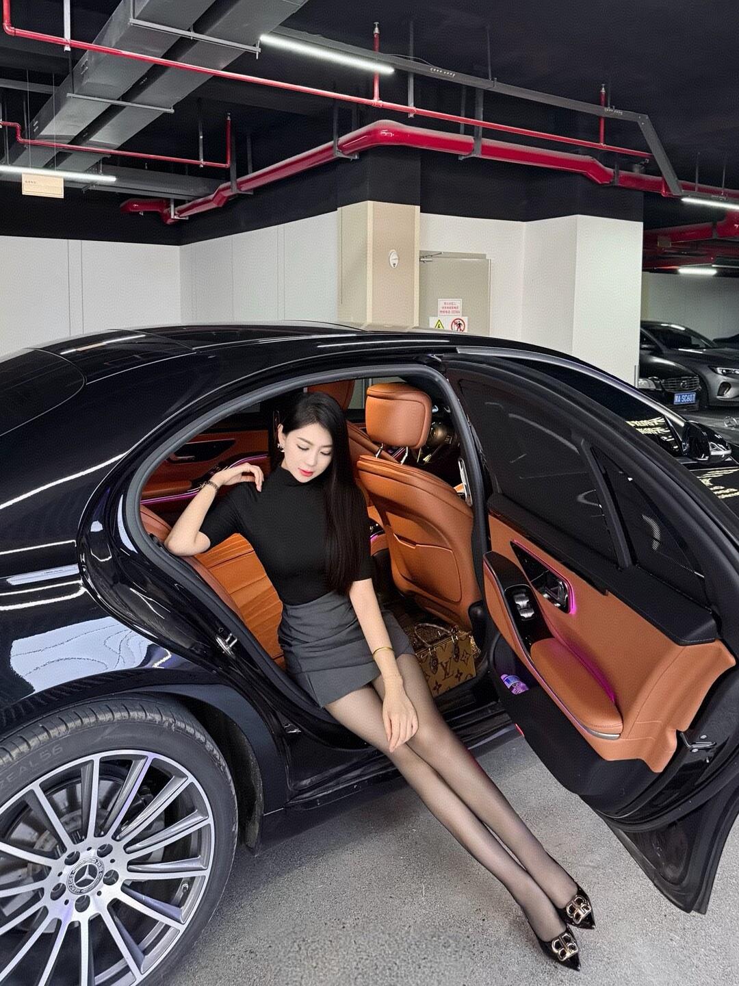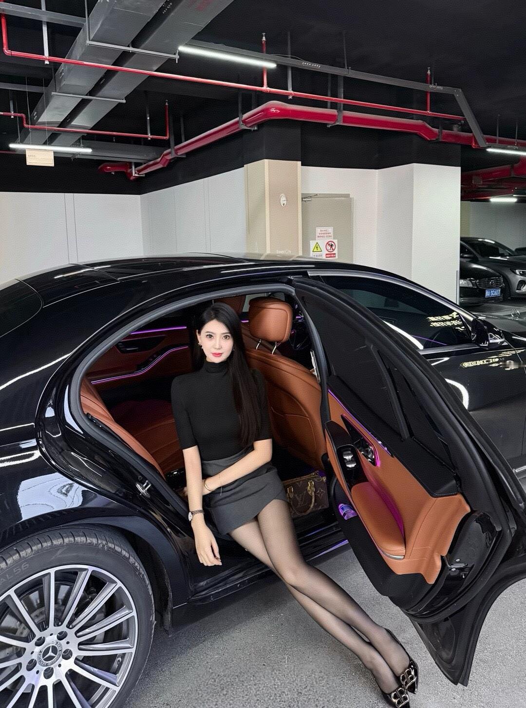 优雅黑裙美女与豪车合影,尽显奢华与魅力!