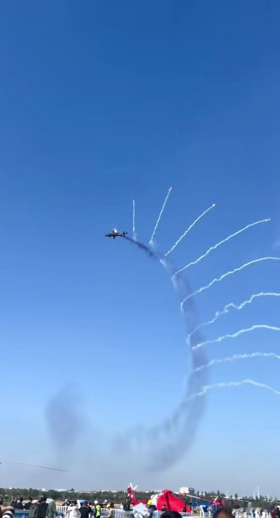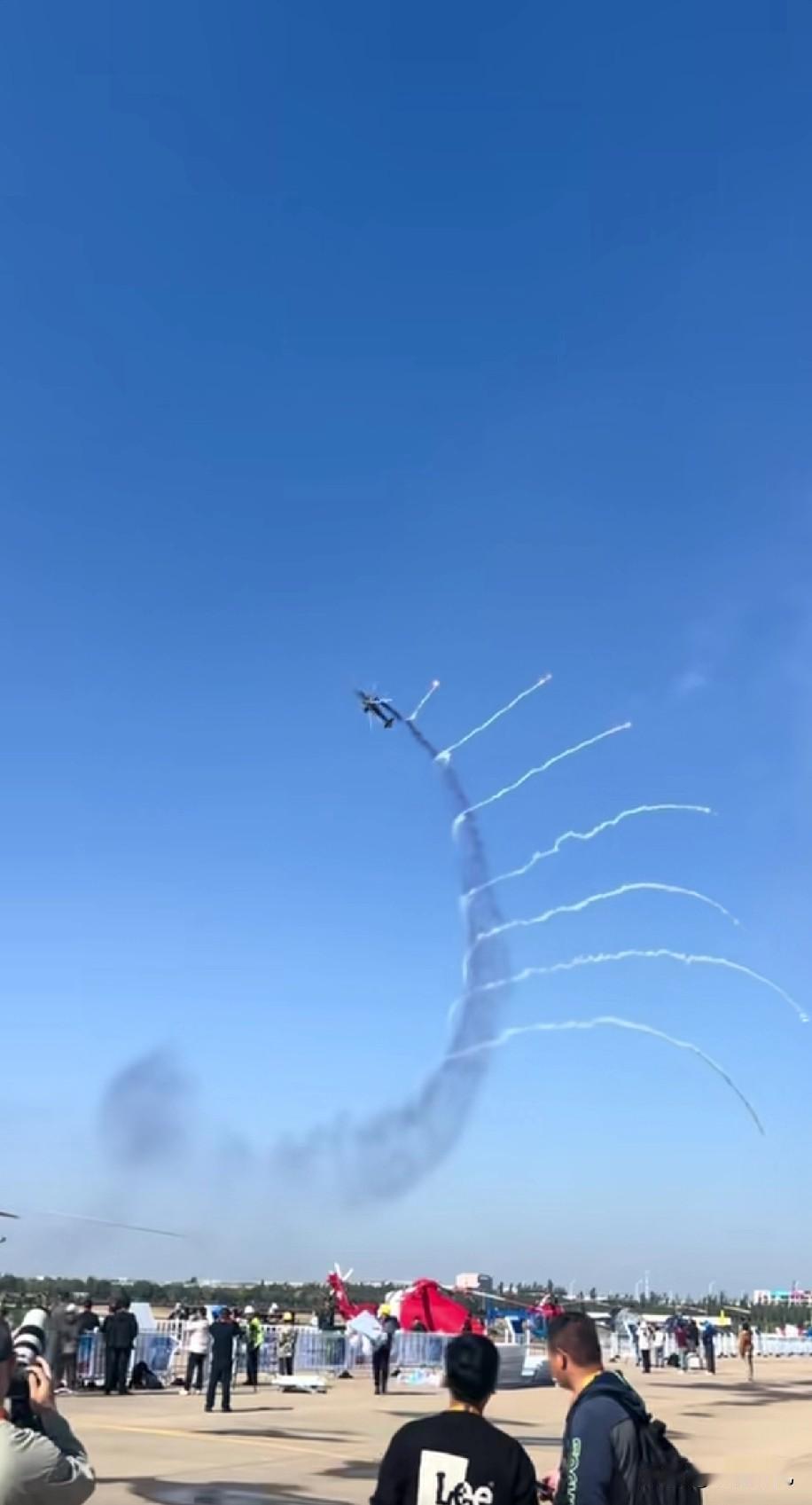 天津直博会,武直10飞行表演太精彩了吧? 武直10,边绕圈边释放干扰弹,这画面