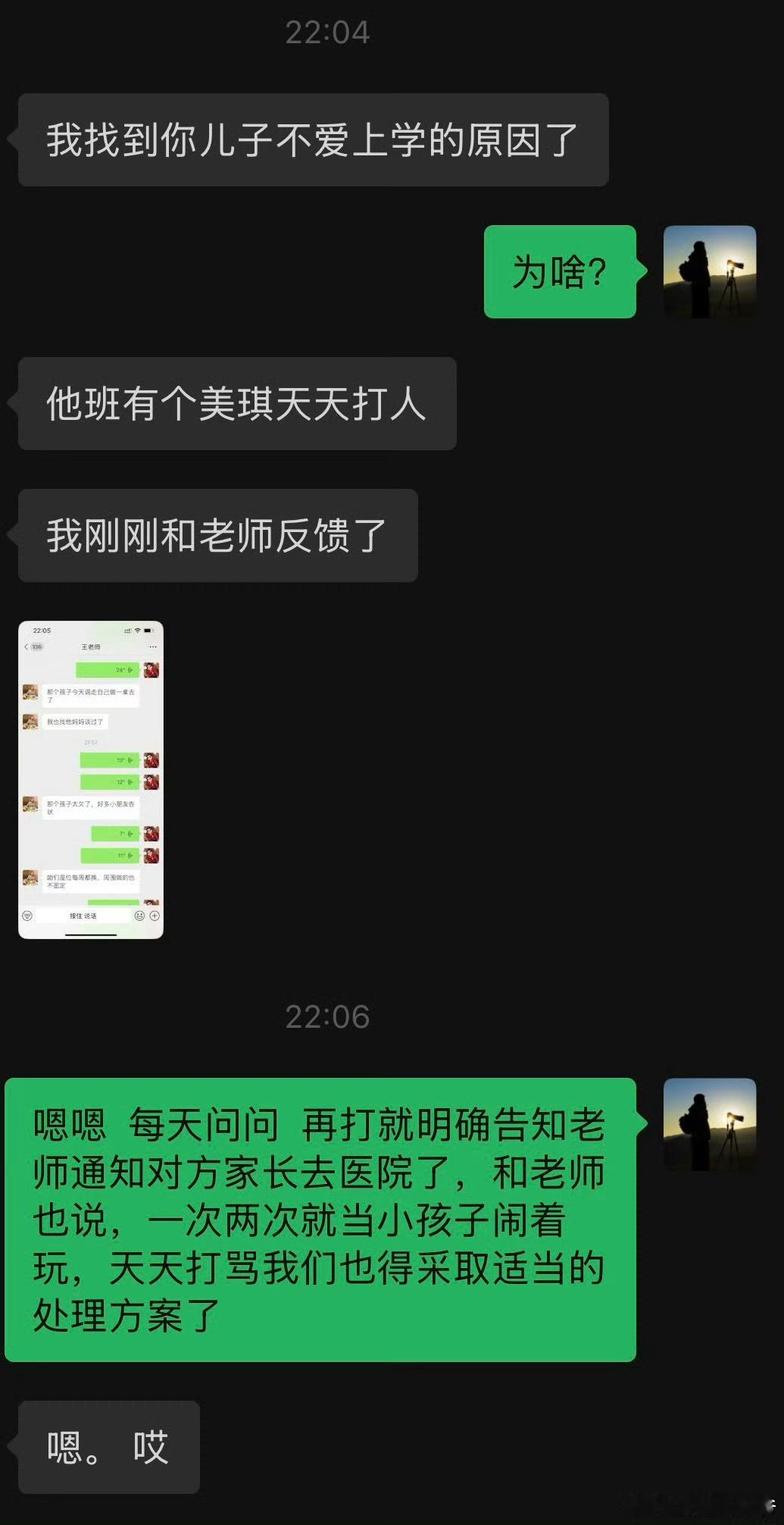 ~我儿子说那孩子打他,他还回去了,并且告诉老师了;