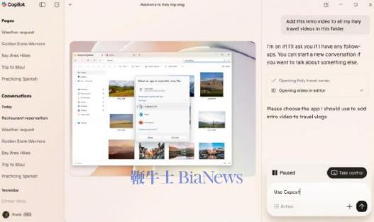 邀请WindowsInsider项目成员测试CopilotLabs上的新功能CopilotActions,该功能可让AI智能体像真人一样处理写文档、发邮件等本地桌面任务;
