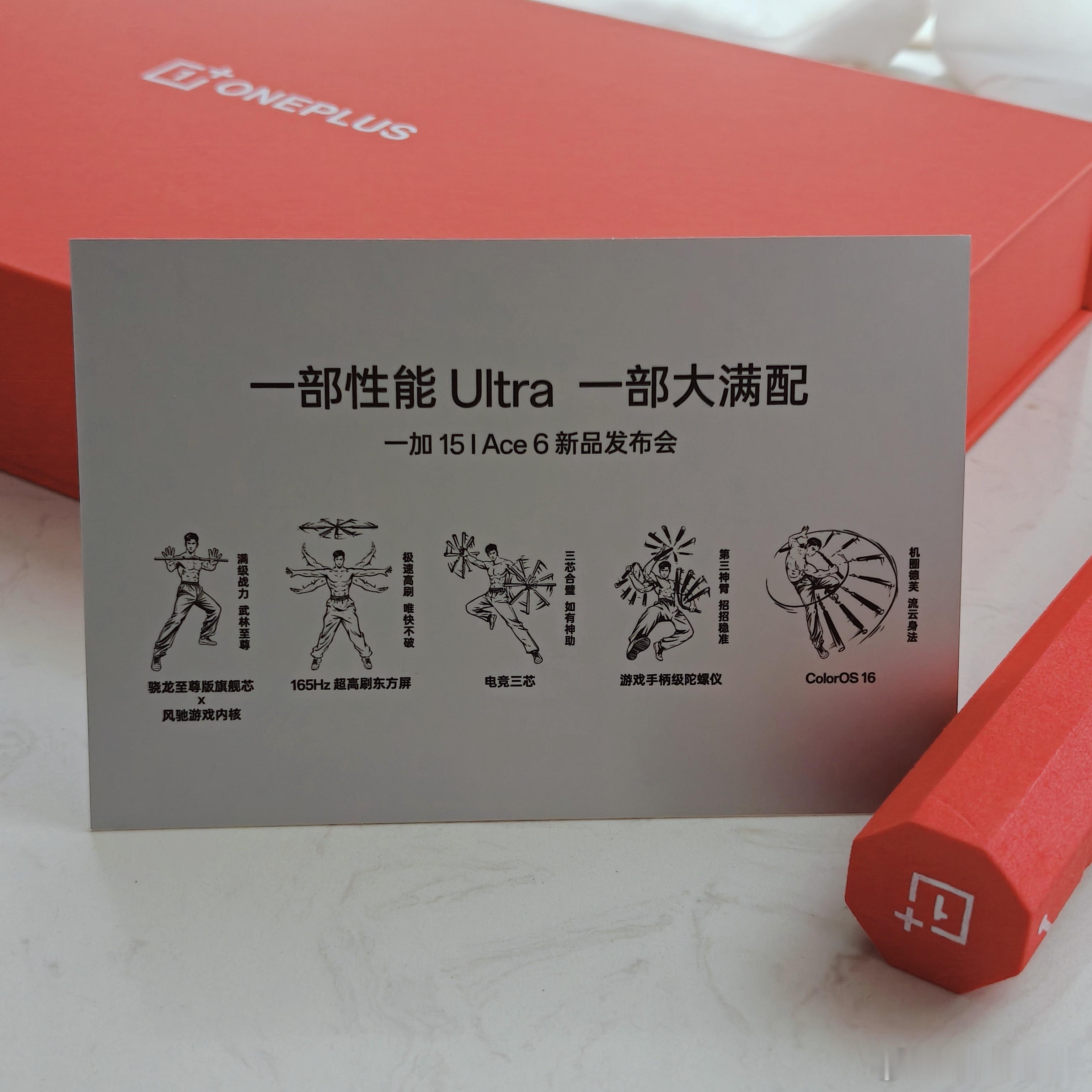 收到了一加15和一加Ace6的发布会邀请函!里面是一副双截棍,分别印有一部性能Ultra一加15,它以全球首块超高刷高分辨率屏幕搭配最顶芯片与自研风驰游戏内核,开启手游165超高帧时代;另一部大满配一加Ace 6,则以碾压同档的极致性能与超凡满配,打造新一代电竞标杆。附赠的武林秘籍上同样信息点很多,骁龙至尊旗舰芯、风驰游戏内核、165Hz超高刷东方屏、游戏手柄级陀螺仪、电竞三芯、ColorOs16等功能,10月27号西安现场不见不散[赢牛奶]
