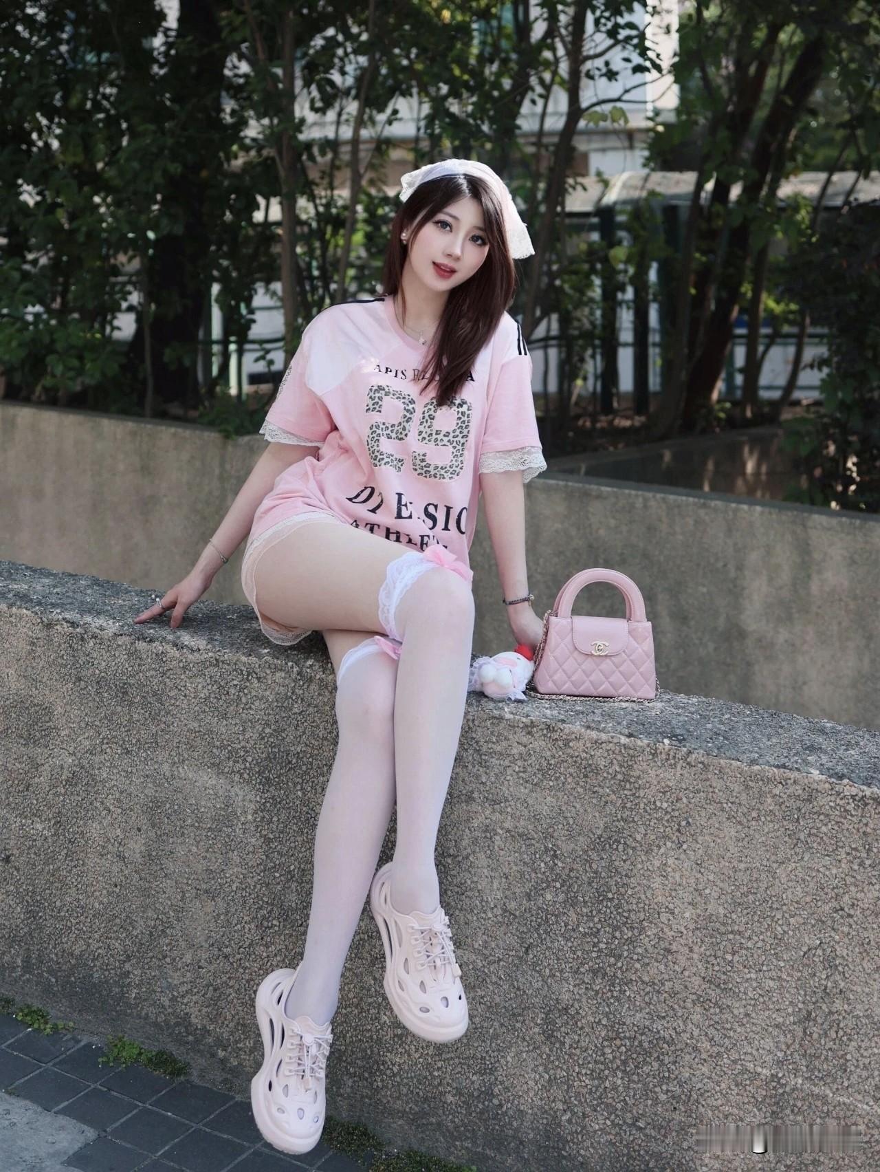 灰色针织长裙+细带凉鞋,简约又显身材,搭配粉色包包和爱心发夹,甜酷感拉满。