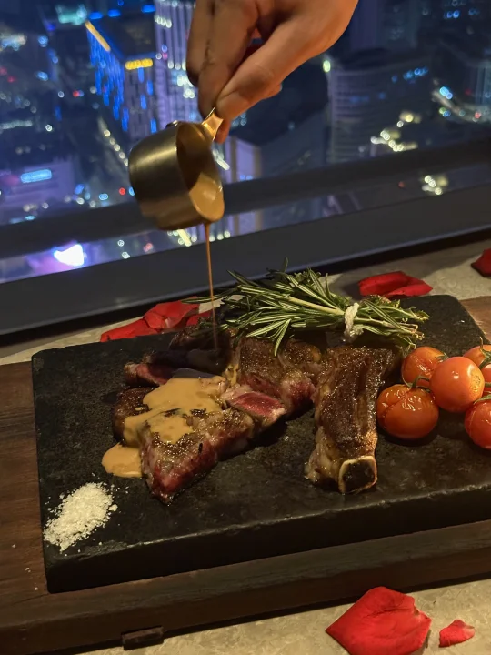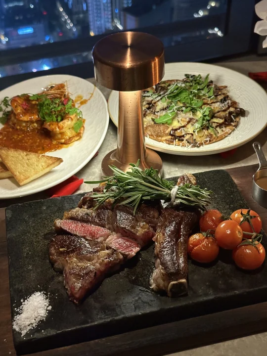 人广65层的云端餐厅,真的超大落地窗整个夜景尽收眼底 蛮安静的,可以看到外套三件套,下面也可以看到南京步行街