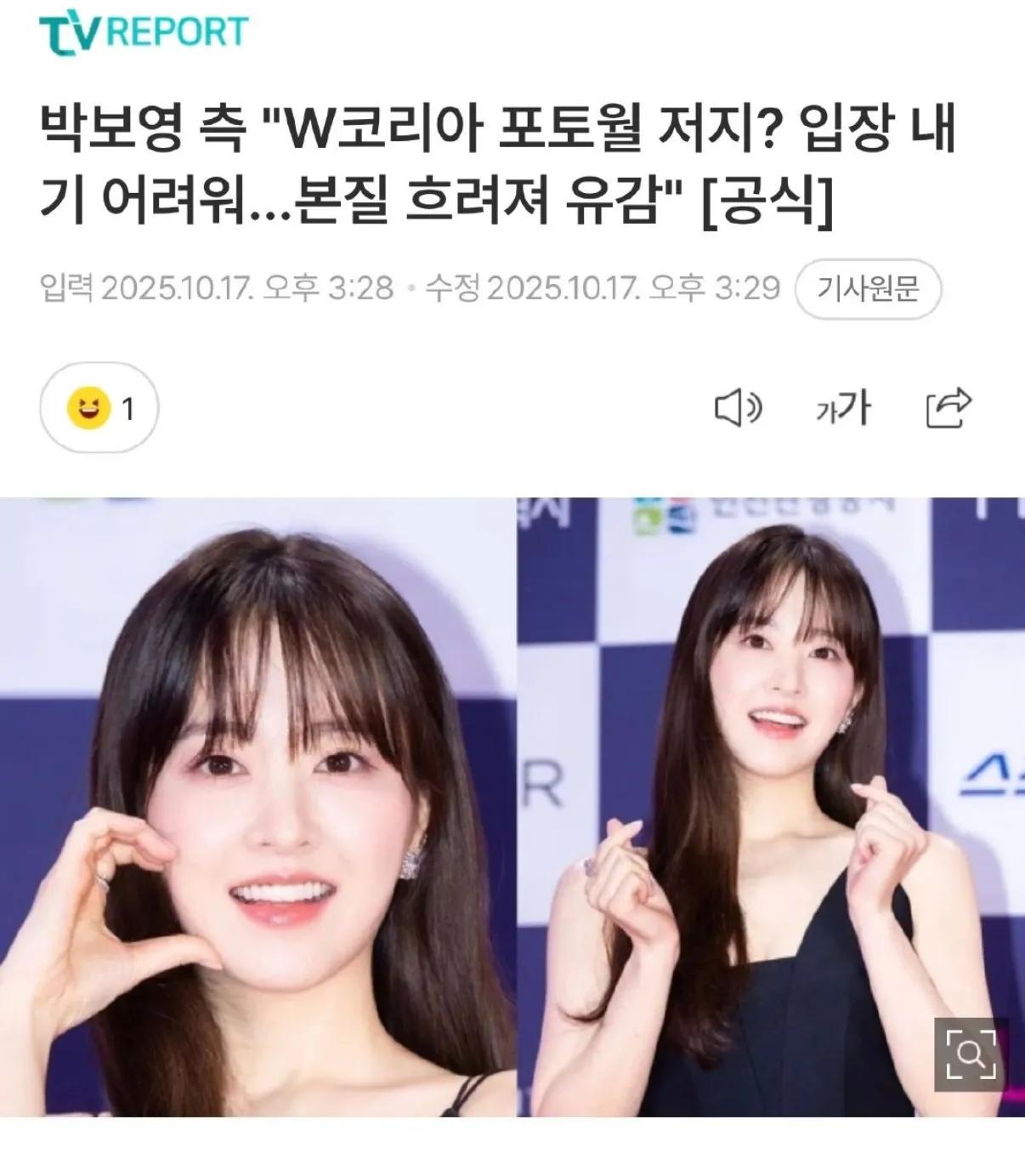 朴宝英因没穿赞助丝袜被禁止走红毯。 据Dispatch报道去年10月举行的W KOREA乳腺癌公益活动上,演员A某因“未穿丝袜”被拒绝进入红毯。这位演员正是朴宝英,当天朴宝英原本计划穿着合作品牌提供的服装出席活动,但由于提供的丝袜尺码不合适,无法穿戴。 朴宝英以裸腿状态抵达会场后,W KOREA方面表示“未穿丝袜无法进行全身拍摄”,限制她在红毯背景板前拍照。后来官方发布的朴宝英照片确实被裁剪成仅显示上半身的版本。 最近这场慈善活动惹众怒: W Korea乳腺癌慈善活动数百位明星 对酒当歌、花枝招展、纸醉金迷 活动举办了20年,募集金额却只有11亿韩元 …… 这活动真的一言难尽,慈善主题办得像酒吧晚会一样……而且朴宝英不是故意不穿的,是因为安排的丝袜尺码不合适她穿不了,所以才没穿。去年的事情现在翻出来,是拿朴宝英挡.枪吗?W korea拿品牌方来模糊焦点,不如先解释一下为什么这么多年捐款这么少吧?