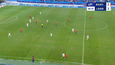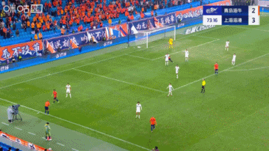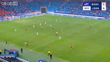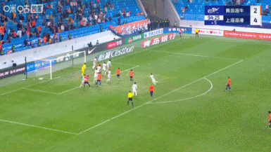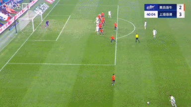 第90+5分钟,青岛海牛角球机会,兰克尔-泽后点倒钩,颜骏凌扑救脱手,宋文杰补射入网,比分改写为3-4↓