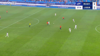 第37分钟,海牛中路进攻,韦林顿送出直塞,禁区内兰克尔-泽打门被颜骏凌扑出,王燊超头球解围失误变乌龙助攻,兰克尔-泽再打破门,海牛2-2扳平↓