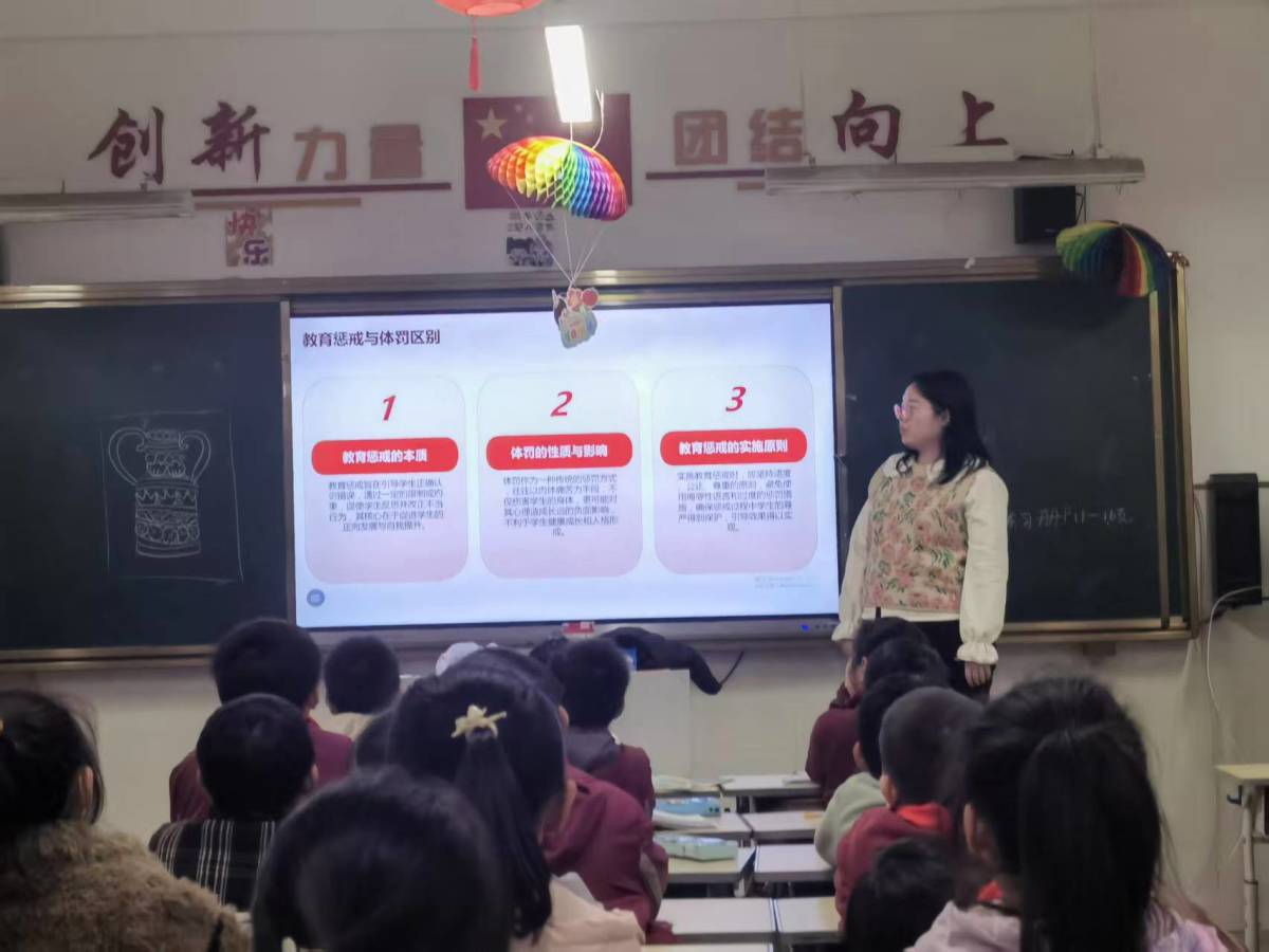 在学习活动中,老师们将在前期共同学习和撰写感悟的基础上,把对规则的深入理解转化为生动易懂的教学内容。他们结合校园生活实例,为学生们系统解读规则的依据、程序和尺度。学生们在老师的引导下积极思考、踊跃发言,分享自己对规则的理解。这种基于充分准备的师生互动,让“惩戒规则”的内涵更加清晰,也更易于学生接受。