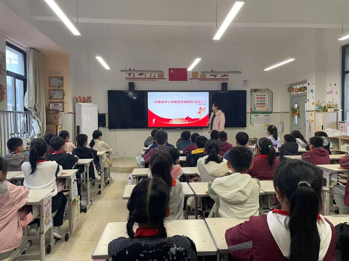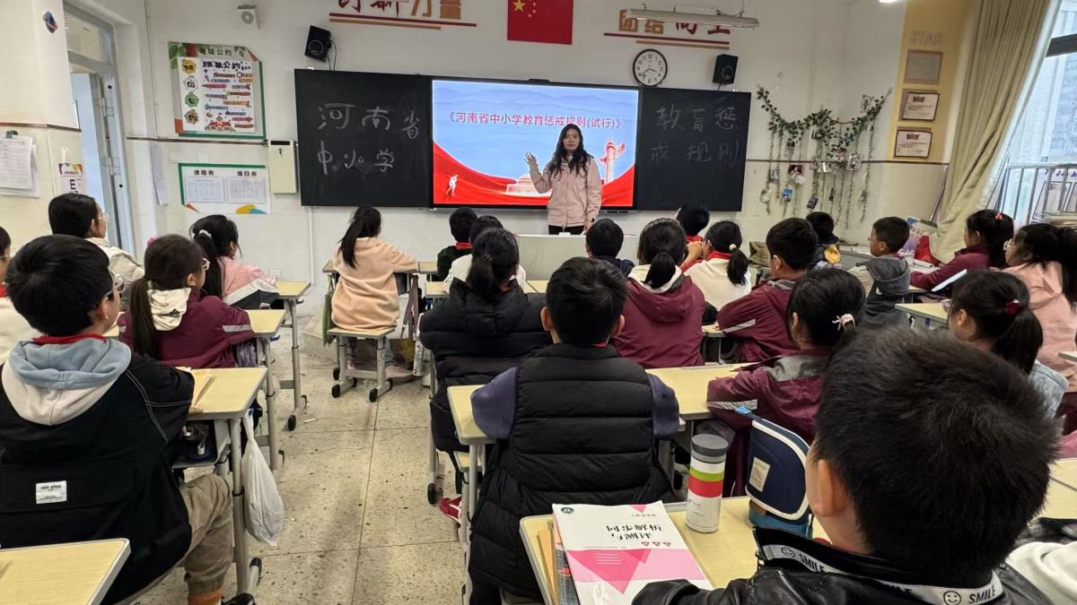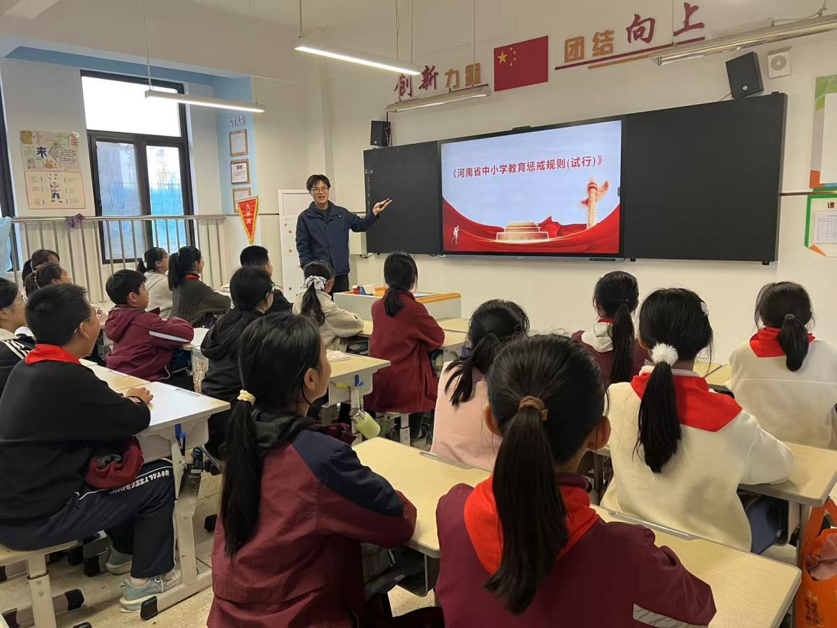 “原来老师实施教育惩戒也需要遵守这么多细则呀!”“是的,这既是对老师的规范,也是对同学们的关爱和保护。”10月17日,郑州市管城回族区尚德路小学的教室里,一场关于《河南省中小学教育惩戒规则实施细则(试行)》的学习活动正在有序开展。老师和学生们一起学习《河南省中小学教育惩戒规则实施细则(试行)》,为营造更加健康、和谐的校园环境携手努力。