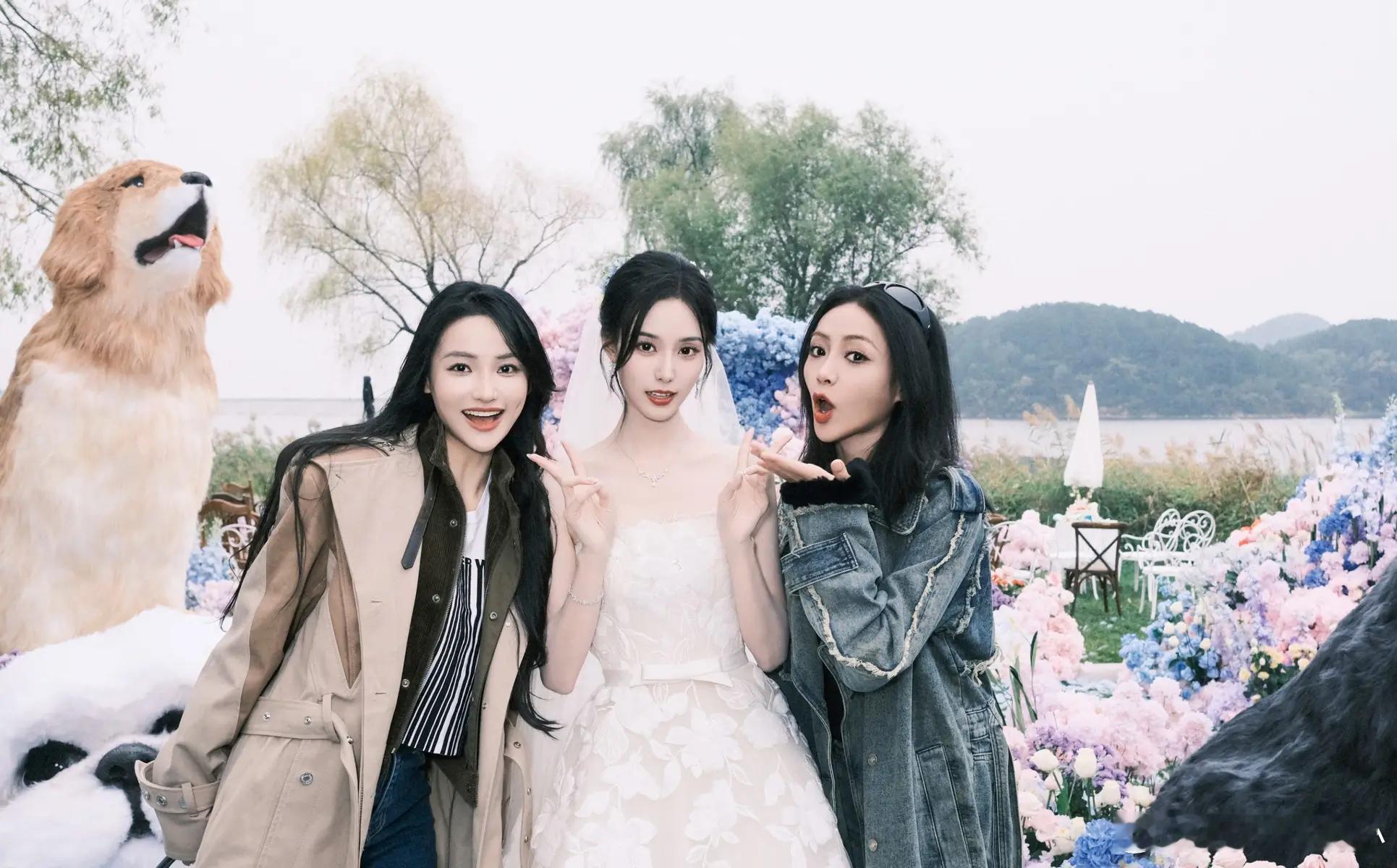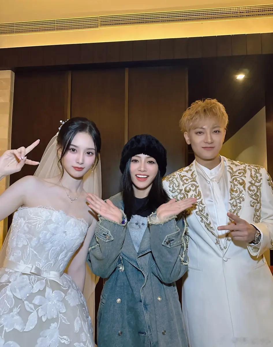 谢可寅晒与徐艺洋黄子韬合照 夸赞新娘穿婚纱好漂亮