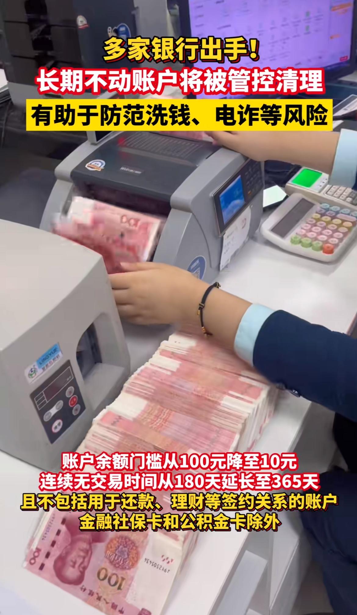 最近多家银行宣布要清理长期不动账户,这事儿可值得关注。2025年10月兴业银行就收紧了睡眠账户标准,现在得一年不动、余额不到十块才清理(社保卡和公积金卡除外),甘肃、广东等地银行也纷纷效仿。 银行这么做原因不少。一是防诈骗,2024年上半年超三成涉案账户两年没动过,骗子就爱用这些卡洗钱;二是省钱,一张卡一年维护费十几到二十几块,全国二十多亿张卡,三分之一闲置,开销巨大;三是让系统运行更顺畅。 大家也别担心钱被收走,只要不销户,钱还在,只是交易受限。央行明确说了这不是没收。现在中国银联还有一键查卡功能,大家可以查查自己名下的卡,及时处理长期不用的。