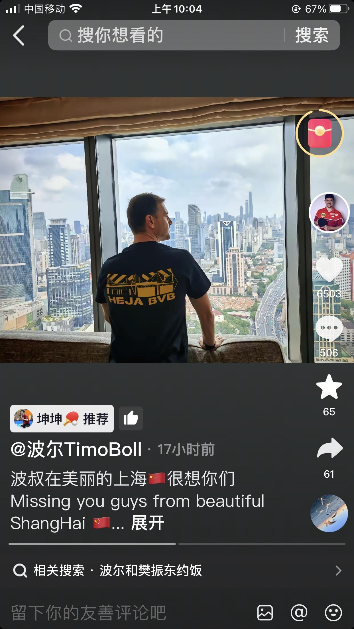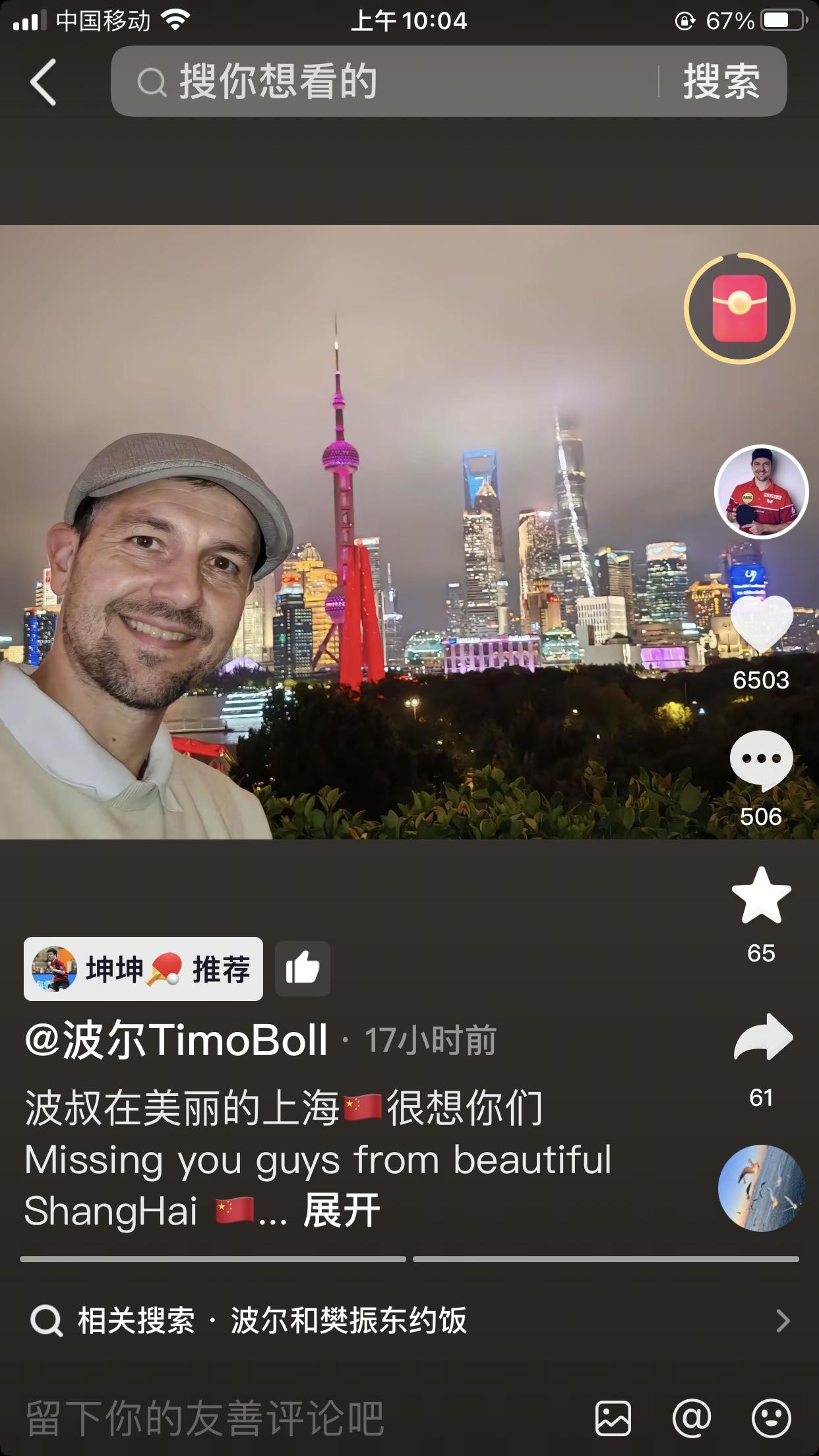来而不往非礼也,何况波尔带了一家人来中国,更是来到了上海,樊振东这个曾经在德国被波叔照顾的小弟,更是在上海请波尔一家吃了一顿丰盛的大餐,虽照片没有流出,可见波尔还是保护东哥,避免人们说三道四。 现阶段没有东东的消息就是好消息,因为我们东东在专注备战四年一次的全运会,祝他单打团体都冠军。
