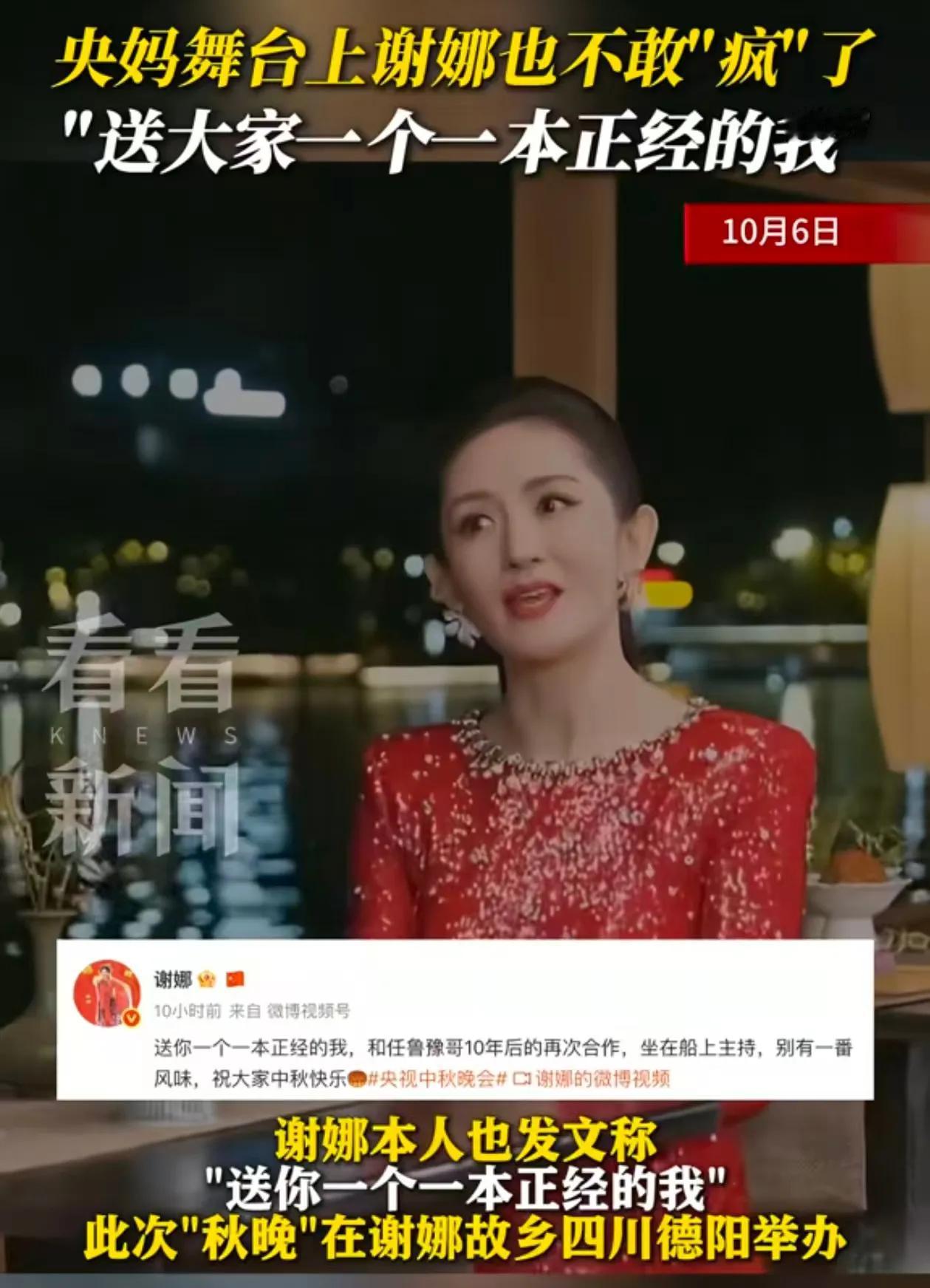 太搞笑了,谢娜在和任鲁豫对台本的时候,她突然神秘兮兮地问任鲁豫会不会临时把她删掉,可以看出谢娜这次确实紧张。 当谢娜接到秋晚邀约的时候,立马通知工作人员,在节目播出前都不要声张,因为万一被删掉多尴尬,大家也说谢娜是老江湖。 不过这次谢娜的表现让黑粉们失望了,今年的秋要收视率是历年来最高的一次,很多网友说因为谢娜主持才关注。 出乎意料,在央视舞台上的谢娜很端庄,也许这就是真正的谢娜。记得张杰在节目中说过,妻子平时不是社牛,内心也很细腻。 在妻子的旅游中,谢娜说过,为什么在节目中会“疯”的原因,导演组曾经也让她跟着台本走,谢娜觉的这样很尬,她就坚持自己风格,打打闹闹的同时也给其他嘉宾能够露脸,也把观众留下来!