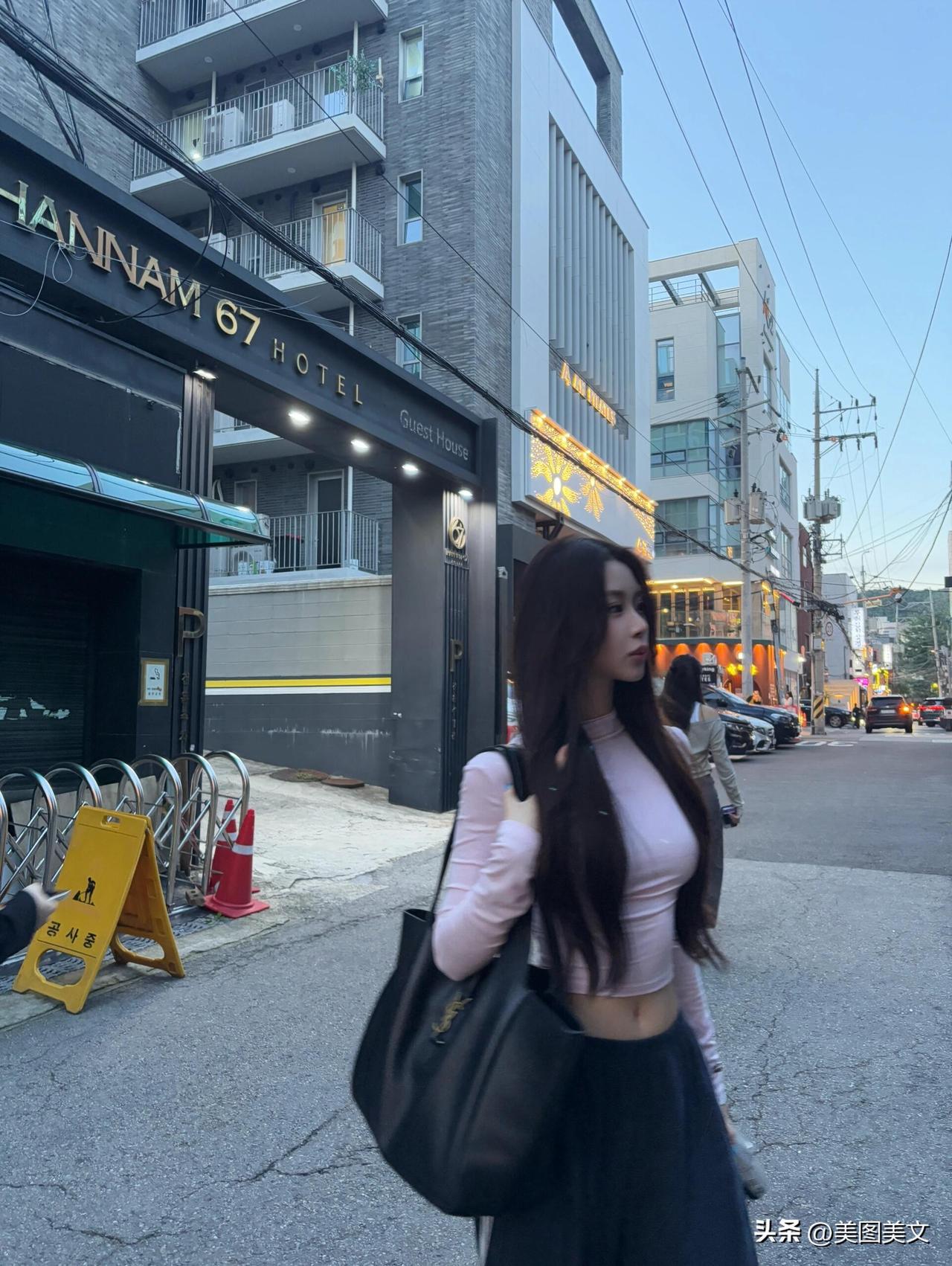 都市少女风,粉色高领衫搭配黑色短裤,时尚又舒适!