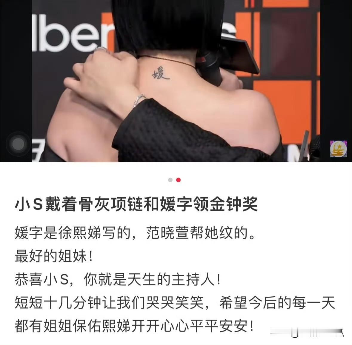 小s不需要同情 你看她做的一切,她需要的是记住,人们都不会忘记她姐姐,因为差不多快忘记的时候,她会出来提醒大家。 她昨天穿的礼服也是上一次金钟奖和姐姐一起穿的,她在颁奖典礼上时而悲悯,时而欢快,情绪转换能力很强,她真的是个狠人。